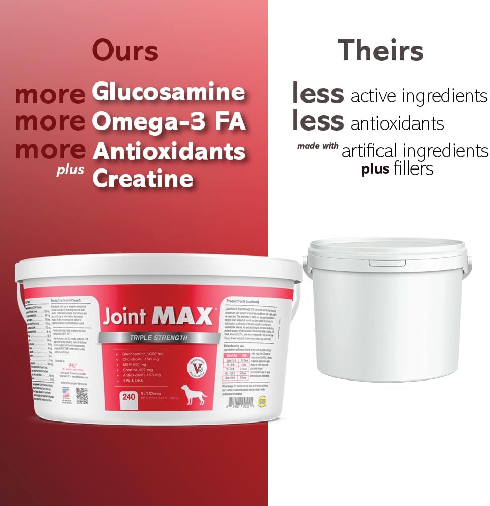 - OUR PROPRIETARY BLEND OF INGREDIENTS IS BACKED BY SCIENCE: Joint MAX is a quality hip & joint supplement for dogs at any stage in life. Our soft chews help ease everyday joint stiffness, arthritis pain and support joint structure. Joint MAX offers a convenient and tasty way to provide essential joint care.
