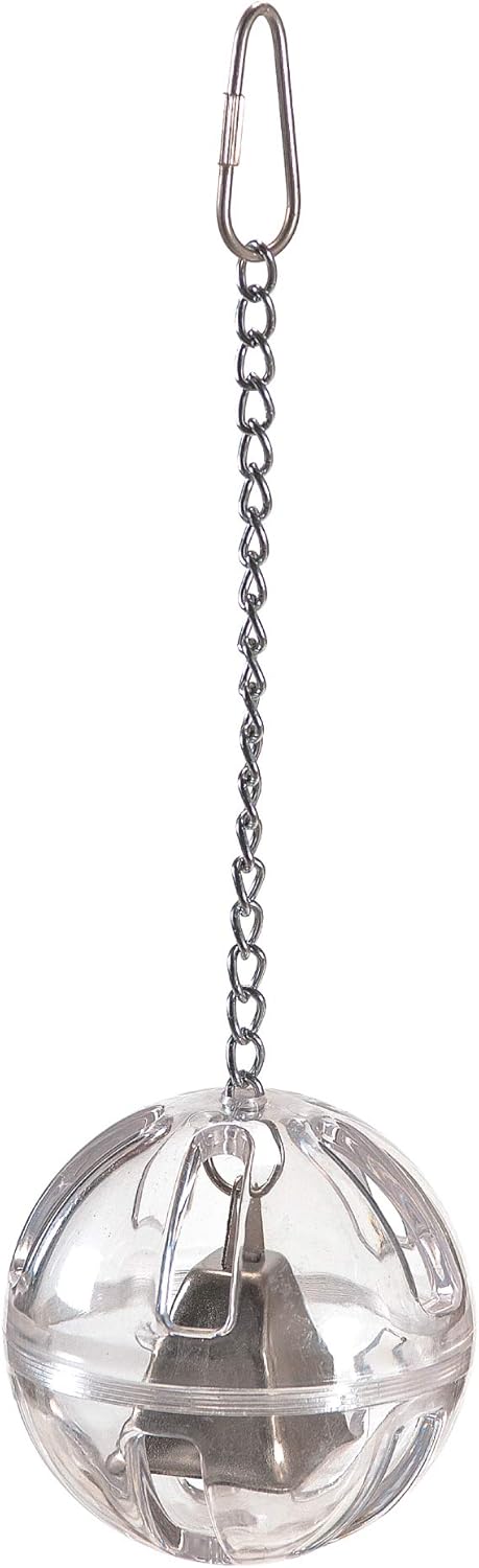 - ENGAGING: Fill the slotted polycarbonate ball of this parrot toy with bird treats for your bird to fish out; This hanging foraging toy doubles as a noise maker to engage your pet bird for hours.