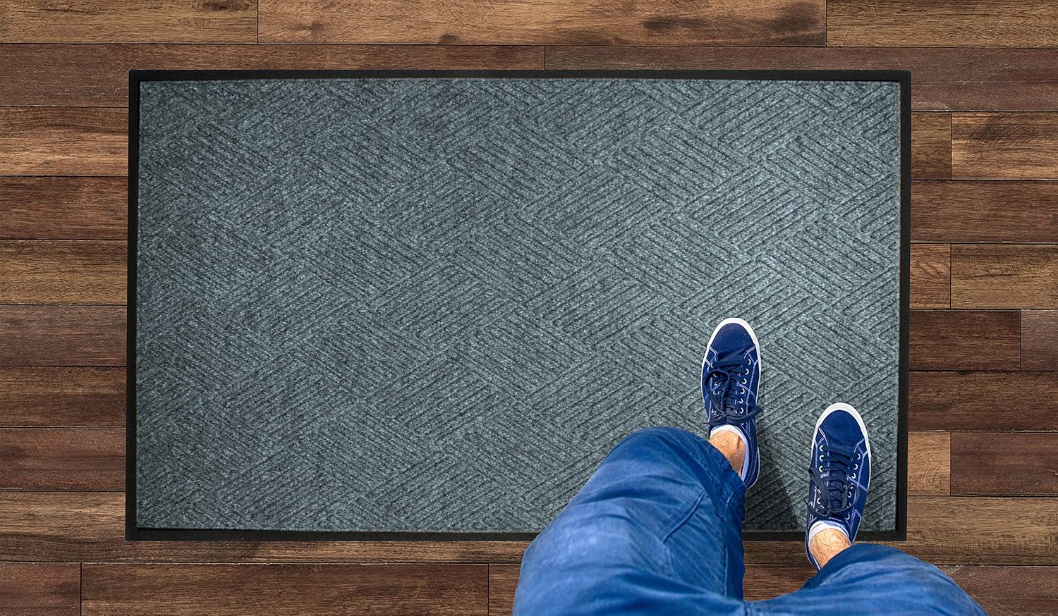 WaterHog Diamond | Commercial-Grade Entrance Mat with Rubber Border – Indoor/Outdoor and Quick Drying Door Mat (Bluestone, 6' x 8.4')