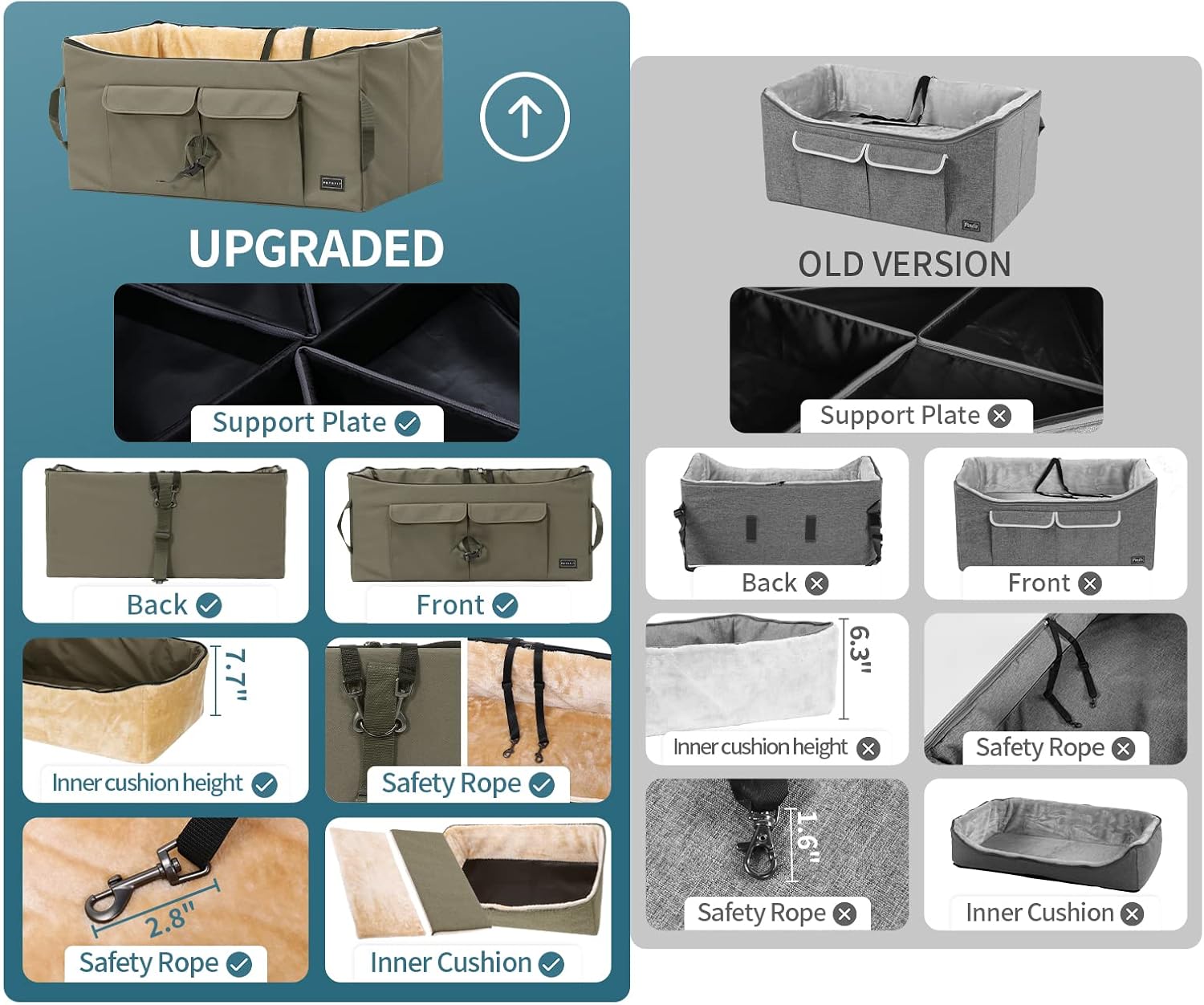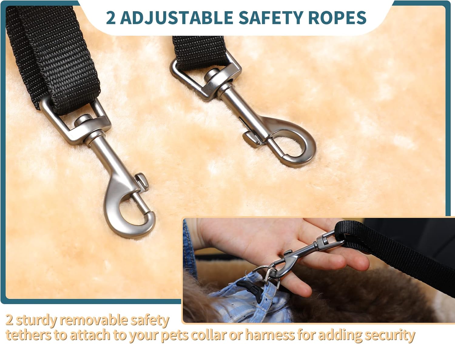 - Reduces distracted driving: The pet car seat large is designed with safety belts to fix the seat to prevent it from sliding in the car, and a ring to hook the dog's harness too so it wont jump out, reducing the possibility of distraction when you driving.