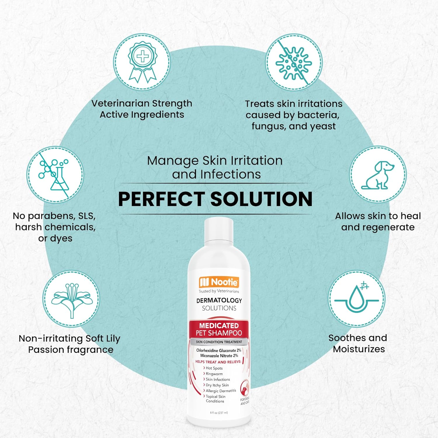 - Our non-irritating shampoo helps prevent topical skin infections. For best results, use with Nootie Pet Spray.