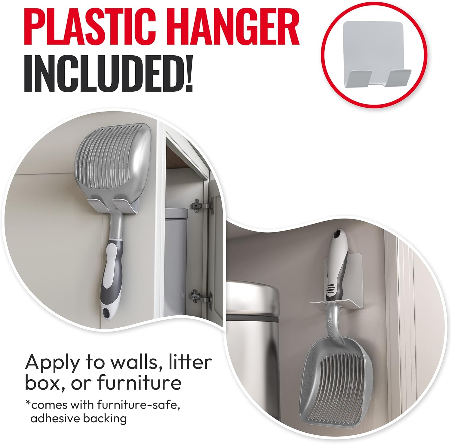 iPrimio Cat Litter Scooper Deep Shovel with Holder - (Silver XL) - Non-Stick Pooper Scooper Shovel Kitty Litter Sifter - Patented Solid Aluminum Poop Scoopers with Long Handle, Easy Grip, Pet Supplies