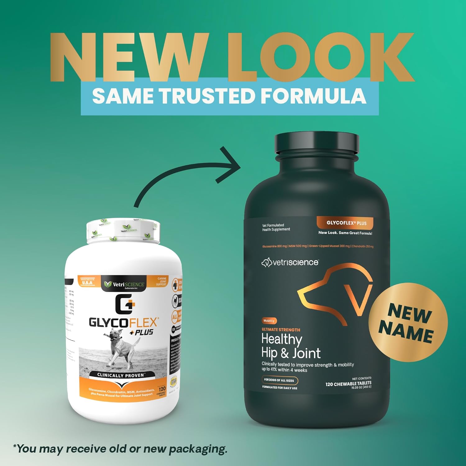 - Glucosamine for Dogs: Ultimate Strength Healthy Hip & Joint (previously GlycoFlex Plus) is our strongest hip and joint supplement for dogs, with powerful levels of active ingredients that work together to help maintain mobility, lubricate joints, and support flexibility