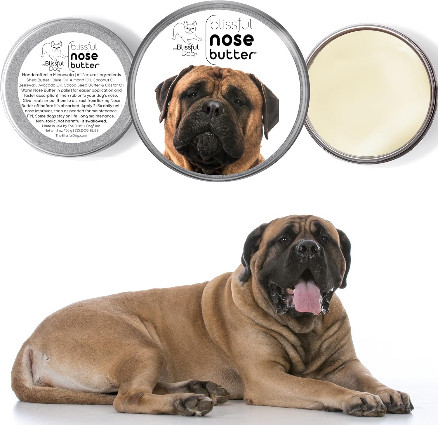 The Blissful Dog Bullmastiff Nose Butter for Dry, Cracked Skin, Lick-Safe Dog Nose Balm with Moisturizing Shea Butter, Almond, Olive, and Essential Oils, Pet Supplies, Uncented, 2 oz.