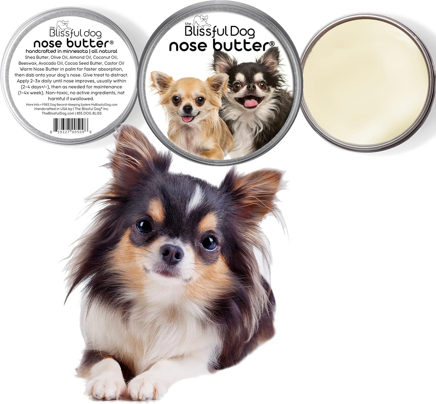 The Blissful Dog Long Coat Chihuahua Nose Butter for Dry, Cracked Skin, Lick-Safe Dog Nose Balm with Moisturizing Shea Butter, Almond, Olive, and Essential Oils, Pet Supplies, Uncented, 1 oz.