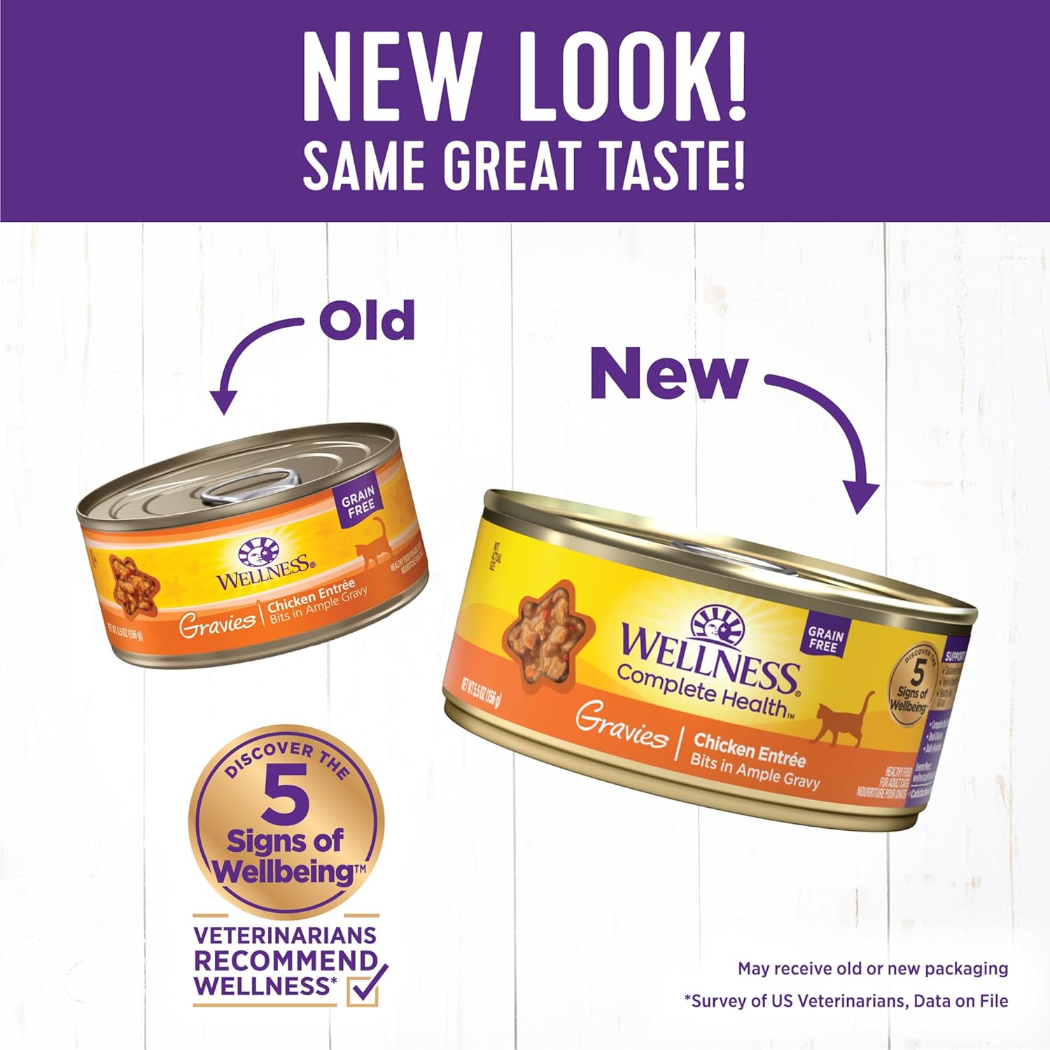 Wellness Complete Health Gravy Adult Wet Cat Food, Natural, Protein-Rich, Grain Free, 5.5 Ounce , 12 Pack, (Chicken Dinner)