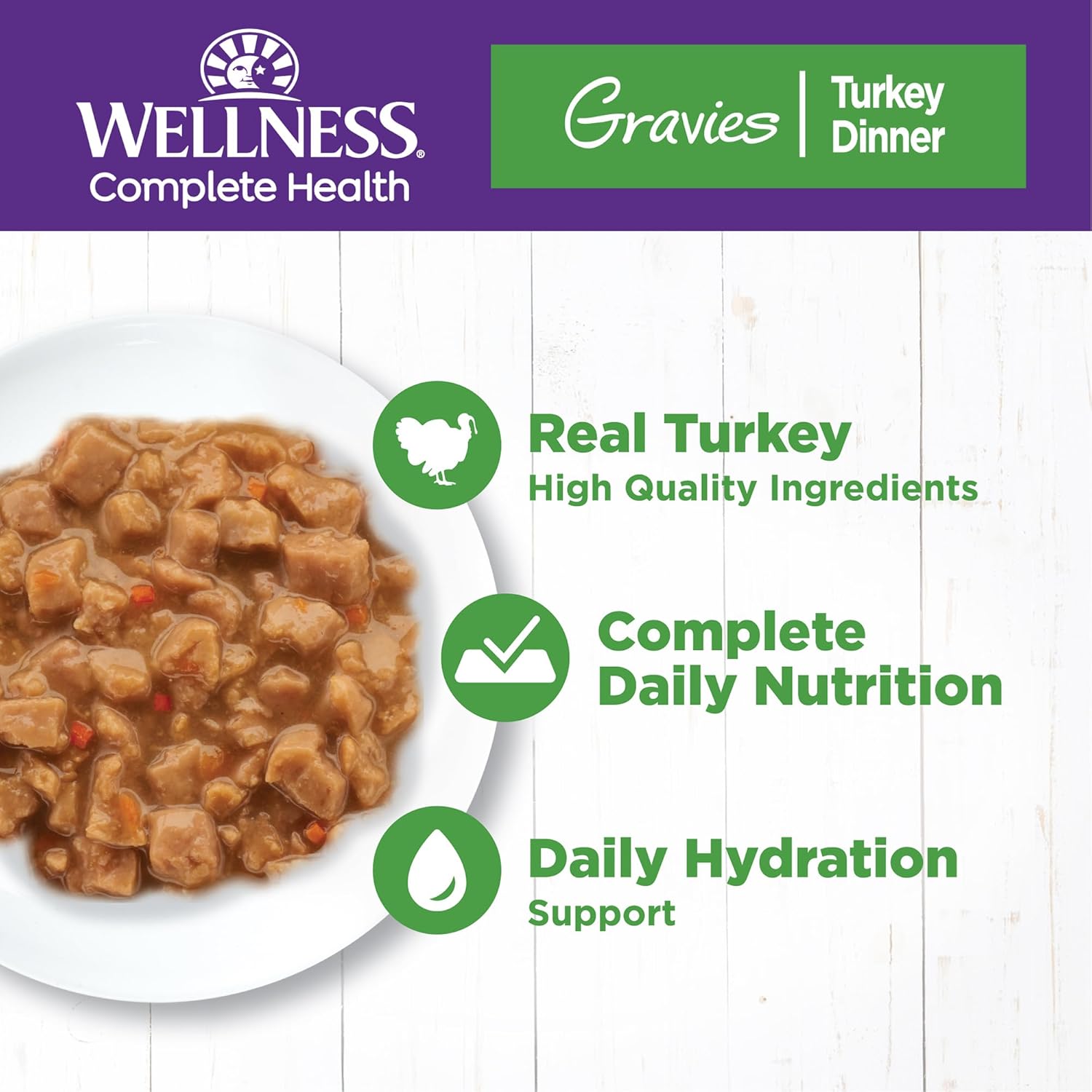 Wellness Complete Health Gravy Adult Wet Cat Food, Natural, Protein-Rich, Grain Free, 3 Ounce, 12 Pack, (Turkey Dinner)