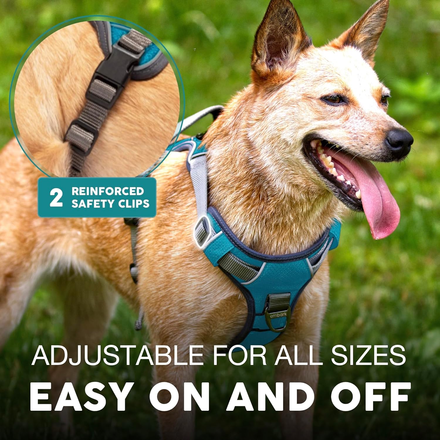 Embark Adventure Dog Harness, Reflective Trim No Pull Dog Harness Medium Sized Dogs - Military Grade Nylon, Front Clip with Gel Lined Handle.