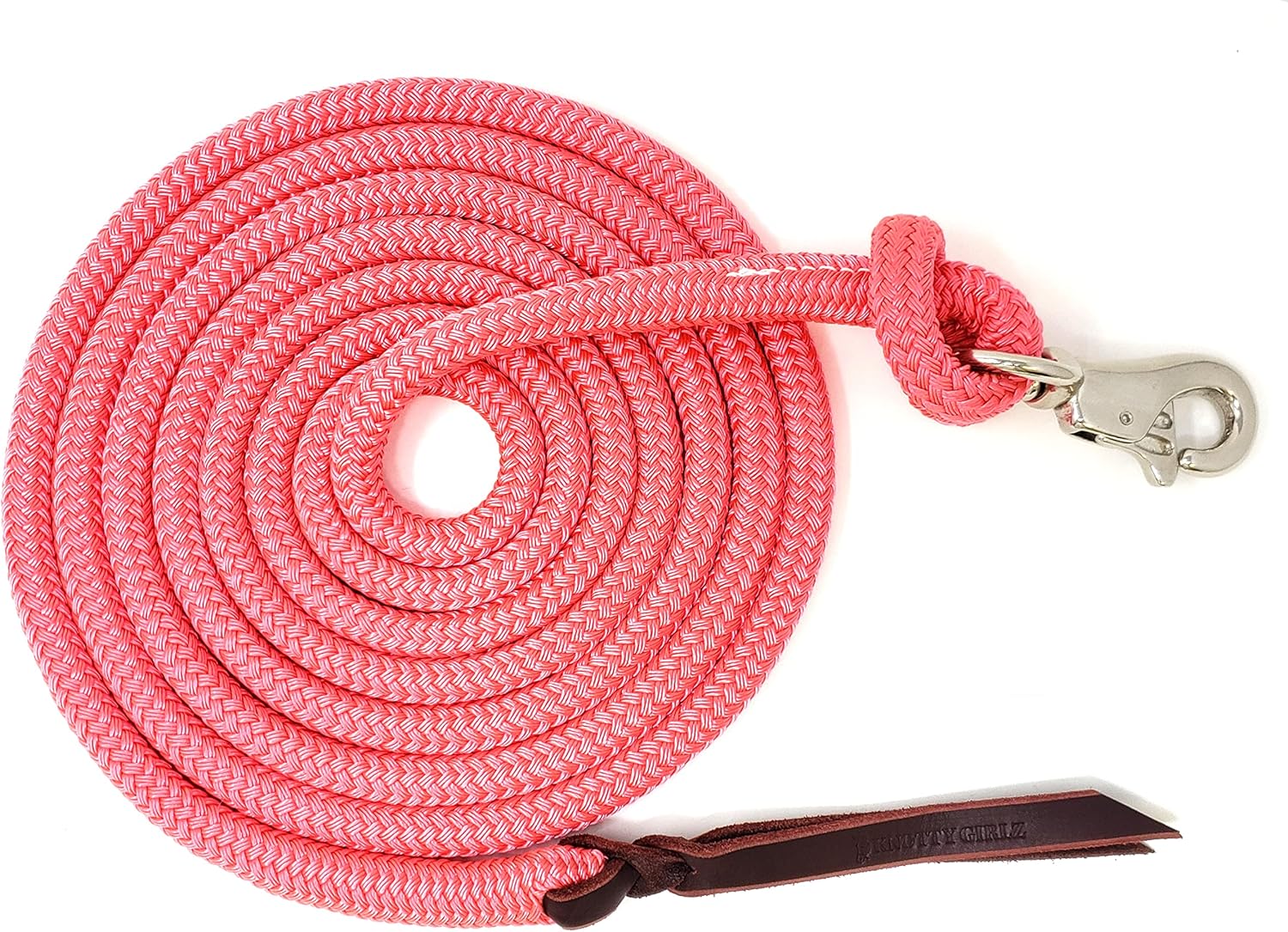 Premium 1/2" Samson EQ Yacht Braid Lead Rope with Nickel Trigger Bull Snap. Option for 12ft, 14ft and 16ft Lengths (Pink, 16 FT)