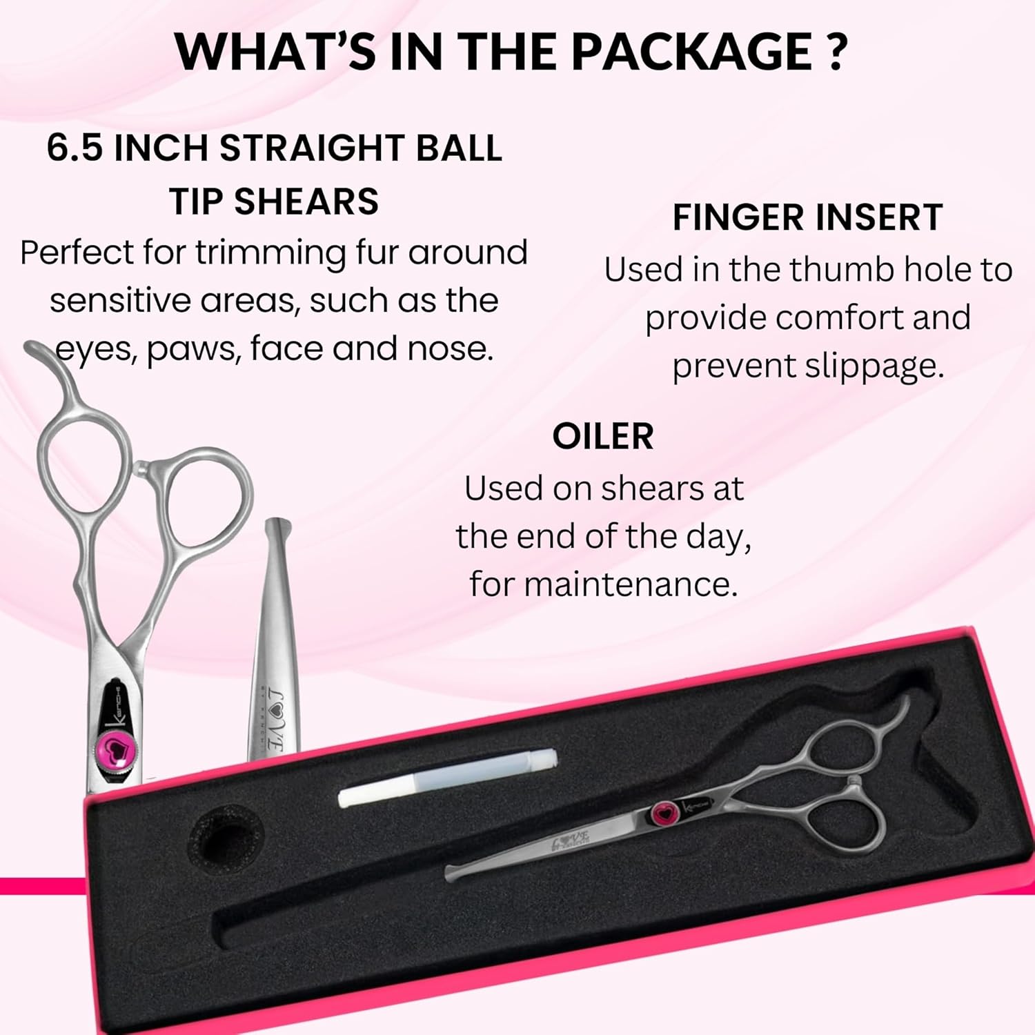 Kenchii Love Dog Grooming Scissors, 6.5 Inch Straight Balltip Shears, Dog Scissors for Grooming, Professional Pet Grooming Scissors, Safety Round Tip Shears