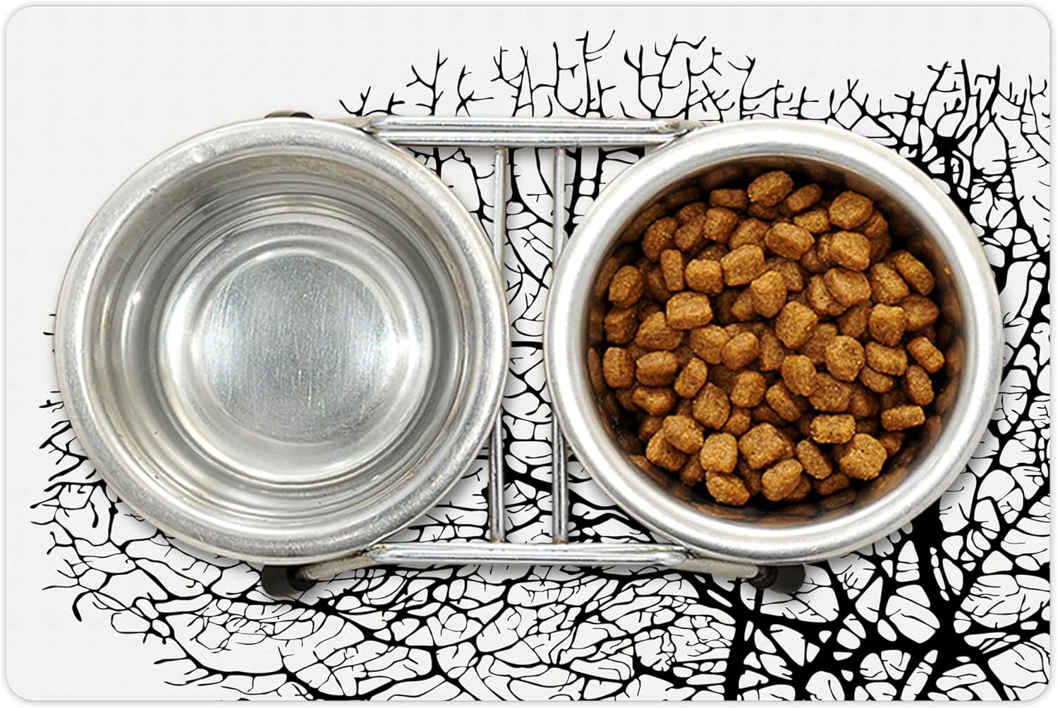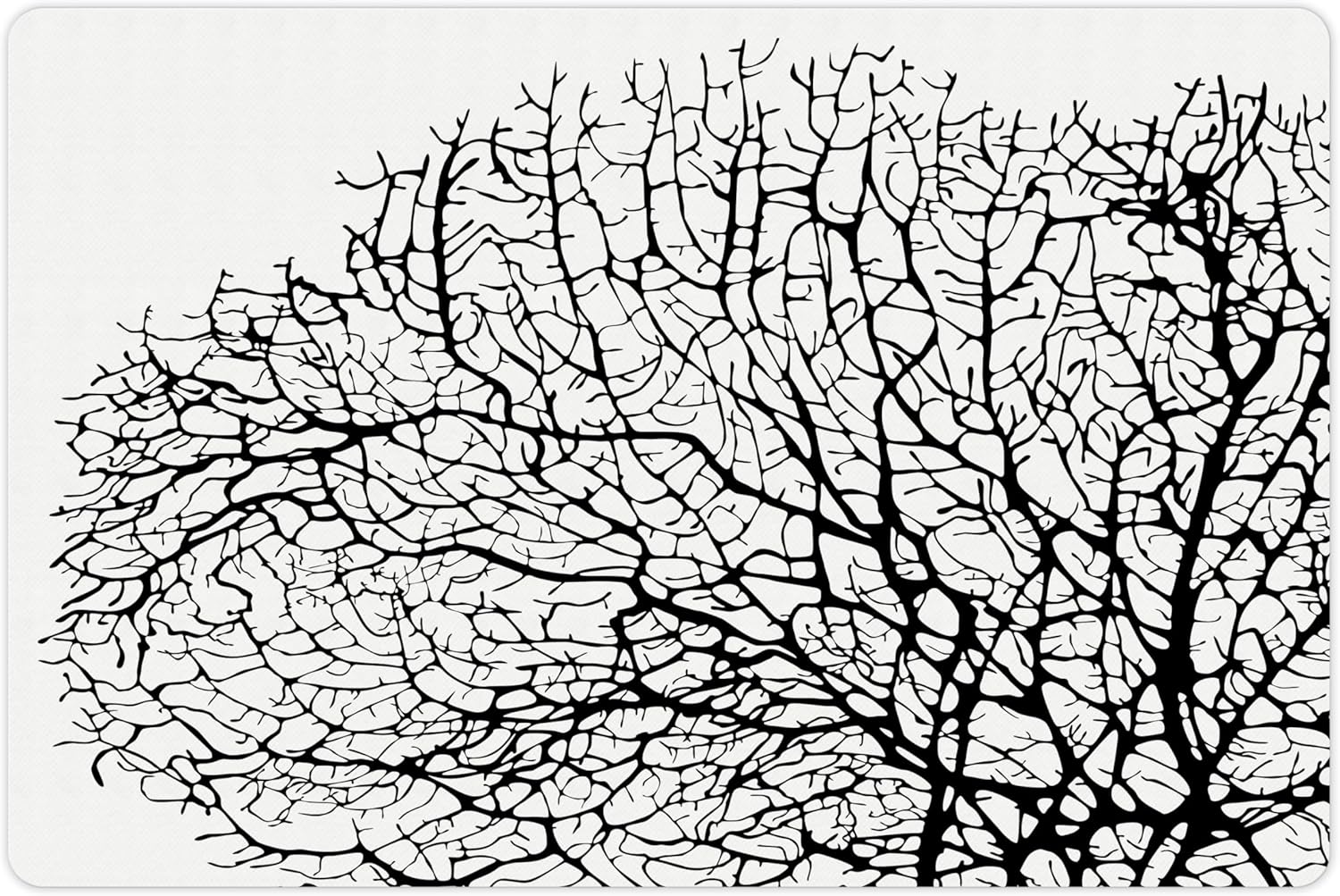 Lunarable Nature Pet Mat for Food and Water, Silhouette of Twisted Coral Reef Branches in Minimalist Tones Underwater Design, Non-Slip Rubber Mat for Dogs and Cats, 18" X 12", Black Print