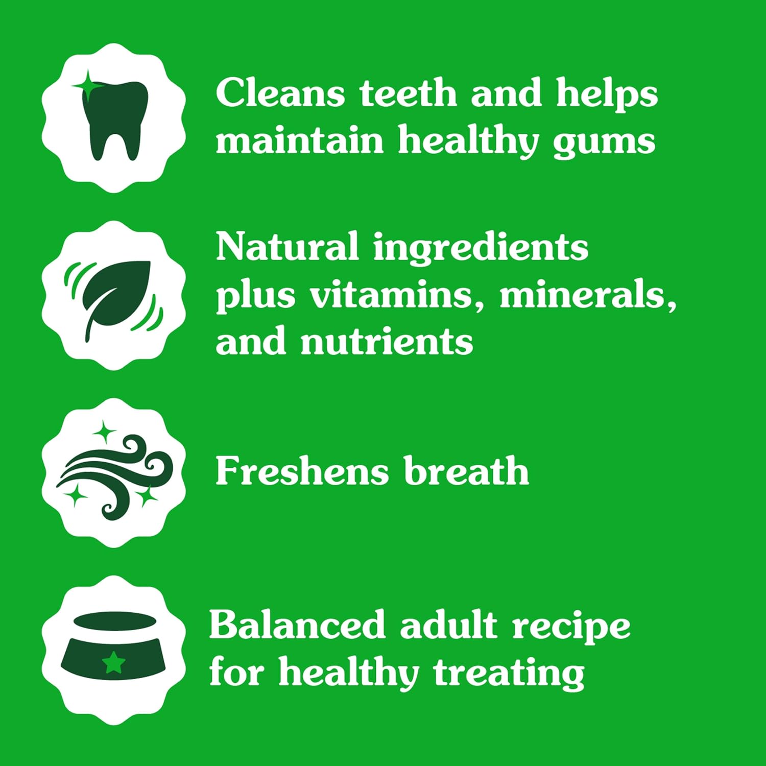 - Natural Dog Treats: Our dental chews for dogs are Made with natural ingredients plus vitamins, minerals & nutrients