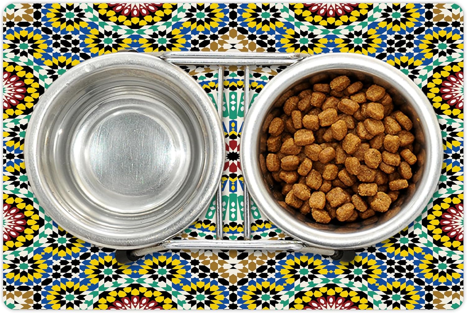 - Features - Fun prints and long-lasting colors. Find any theme and color you want to match your room decor or your pet’s personality. This pet feeding mat can even feature your cat's or dog’s favorite item or design, adding a cheerful touch to your pet’s feeding area.