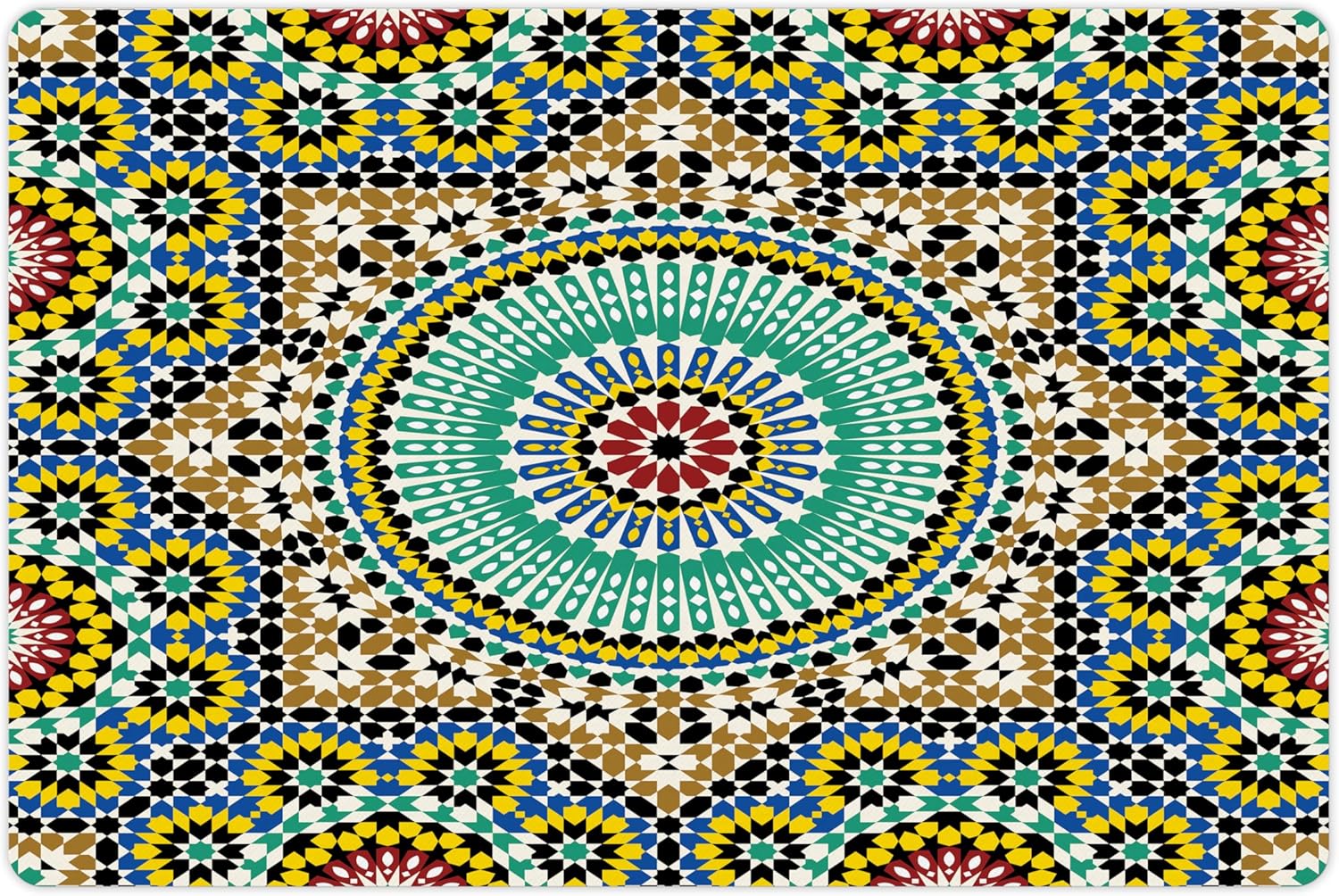 Lunarable Moroccan Pet Mat for Food and Water, Architectural Glaze Wall Tile Ceramic Historical Traveling Destinations, Non-Slip Rubber Mat for Dogs and Cats, 18" X 12", Khaki Blue