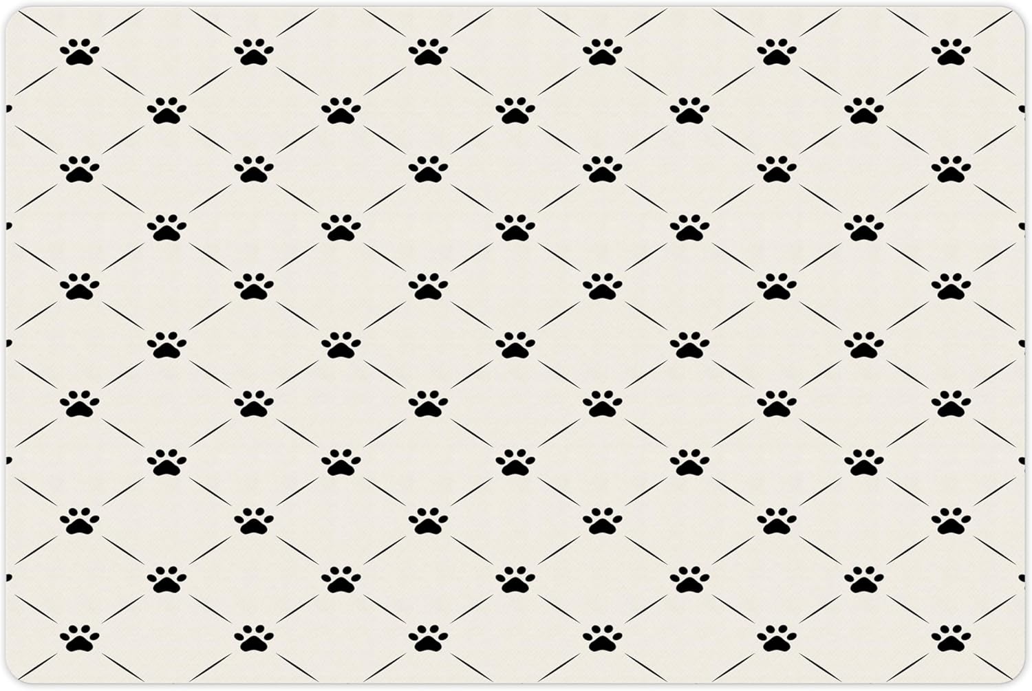 Lunarable Cat Pet Mat for Food and Water, Kitten Paw Footprints in Mirroring Marks Geometric Diamond Shapes Abstract Art Pattern, Non-Slip Rubber Mat for Dogs and Cats, 18" X 12", Beige Black
