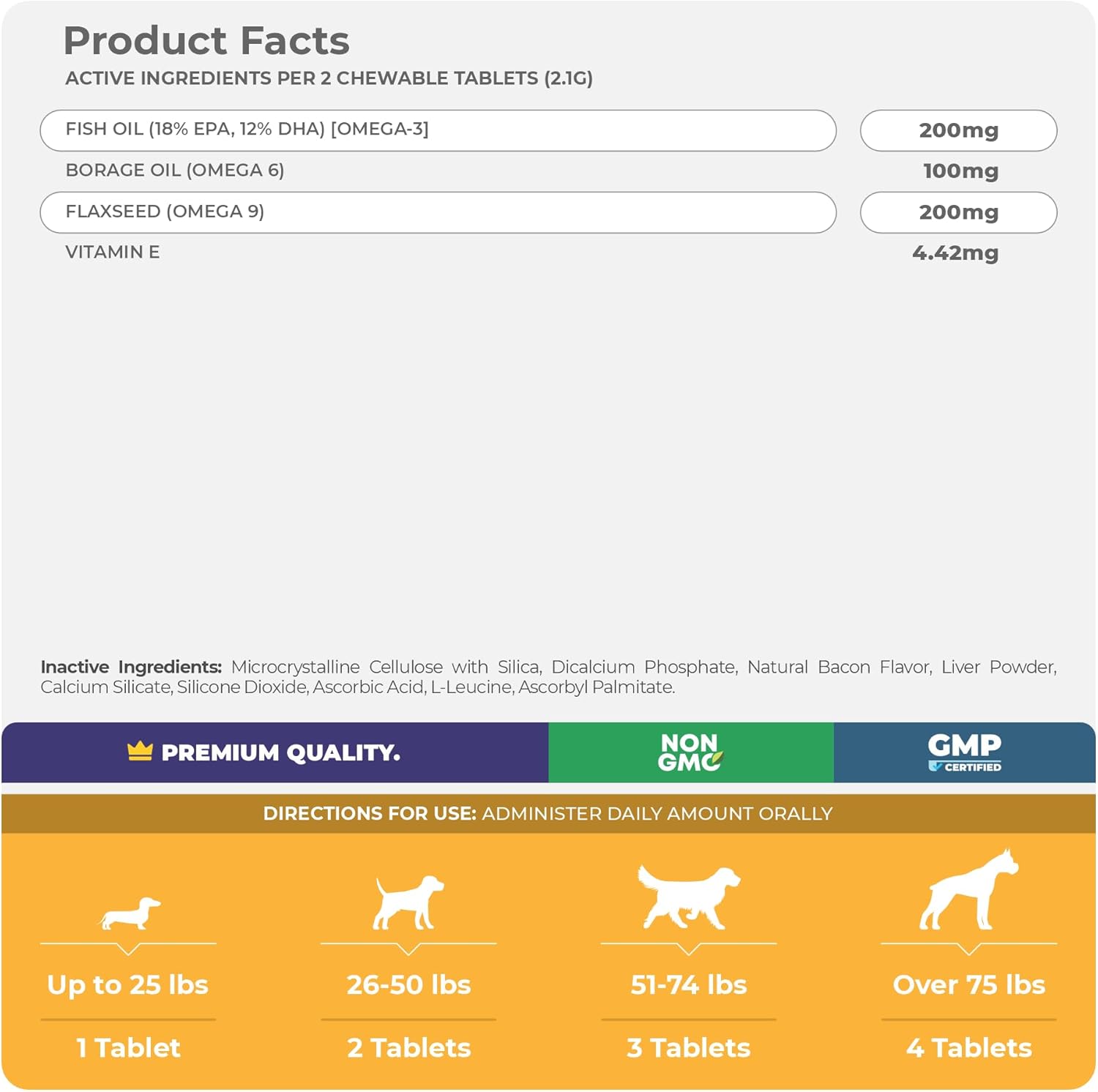 Omega 3 Fish Oil for Dogs - 120 Chewable Tablets - with Omega 3, 6, and 9, Vitamin E for Dog Shedding, Itchy, Dry Skin, Joint & Heart Support