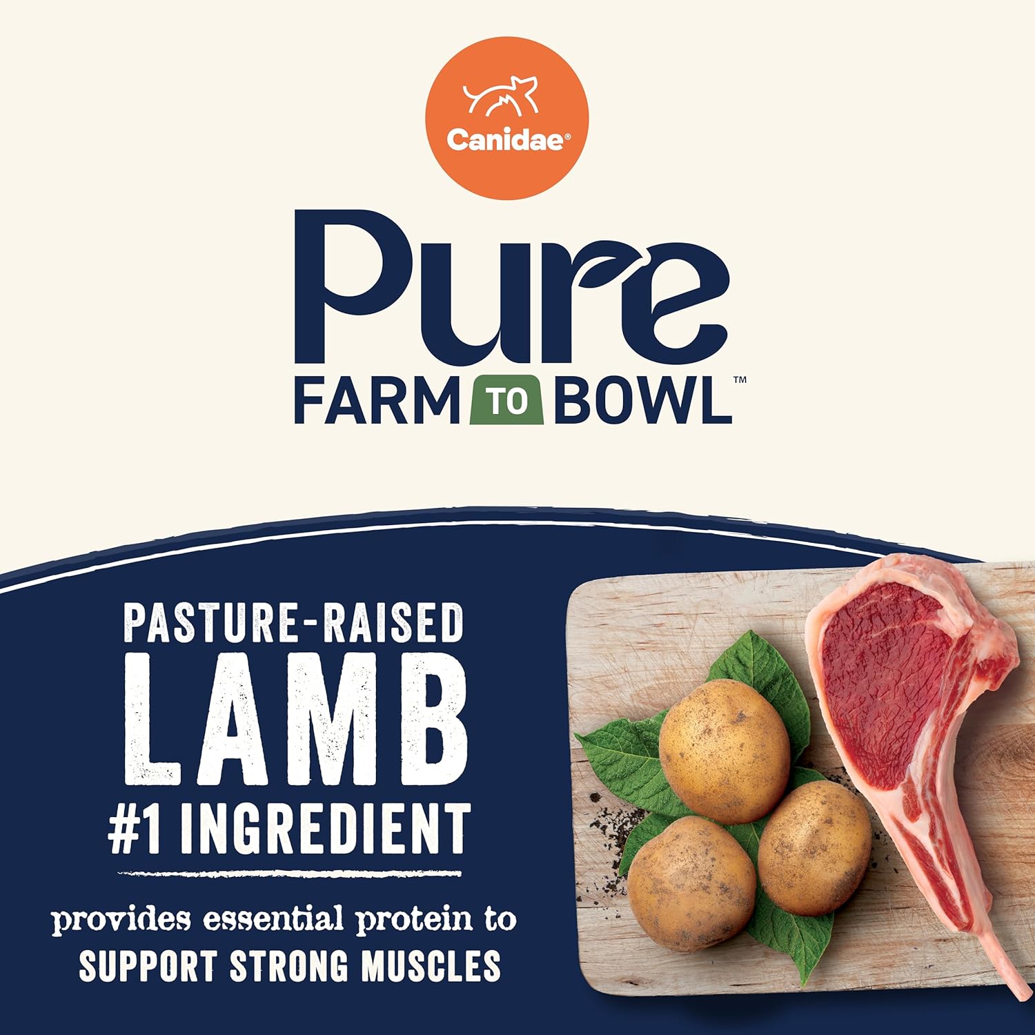 Canidae Pure Farm to Bowl Pasture-Raised Lamb with Goat & Venison Meals, Adult, Grain-Free Dry Dog Food, 22lb