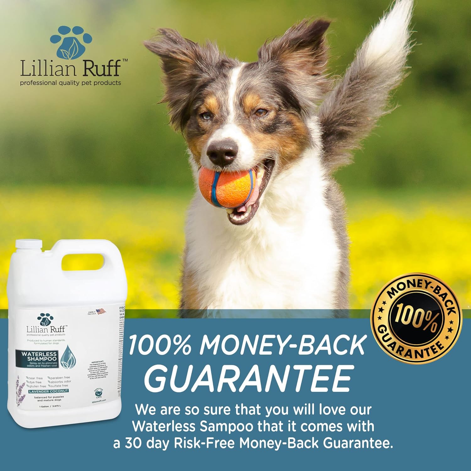 Lillian Ruff Waterless No-Rinse Dog Dry Shampoo Spray with Hydrating Essential Oils - pH-Balanced Dry Shampoo for Dogs - Clean, Condition, Detangle & Deodorize Dry, Sensitive Skin (Gallon)