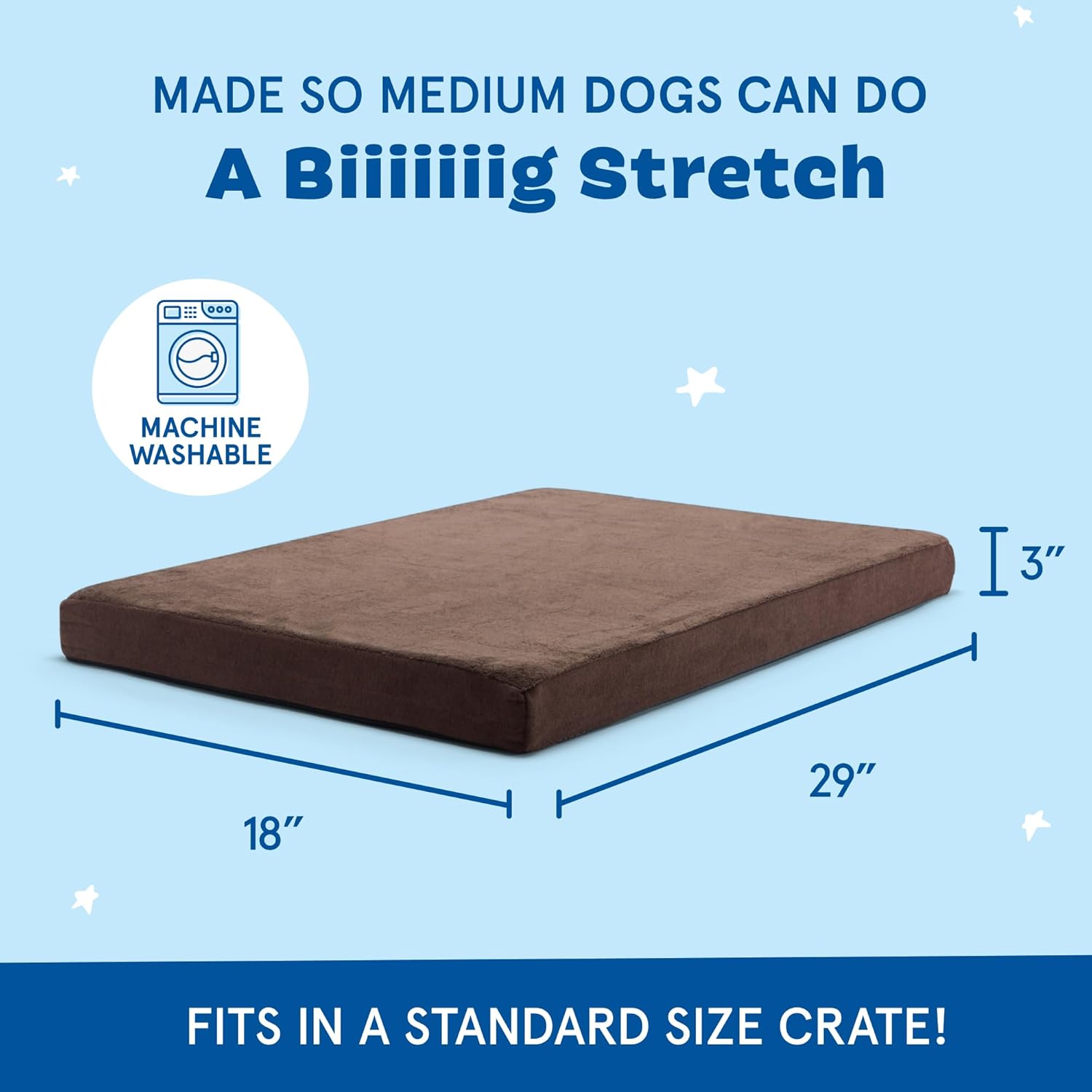 - Ideal for All Sizes: Available in small, medium, large and extra large sizes, this medium dog bed at 29" x 18" x 3" suits a variety of breeds. Whether you need an dog bed for a crate or an water resistant dog bed, our orthopedic dog bed meets your requirements.