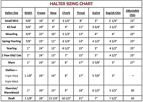 - MULTIPLE SIZES AND STYLES: Our beautiful leather halter for horses comes in three sizes. Cob, Horse or Warmblood. You can see the specific measurements in our comparison chart below. You can also choose from a Padded Halter In Green or Blue. Our padded halters are double stitched. Our Brown/Brass, Black/Brass, and Black/Chrome halters are triple stitched. Plates Match Hardware. All Halters have a throat snap.