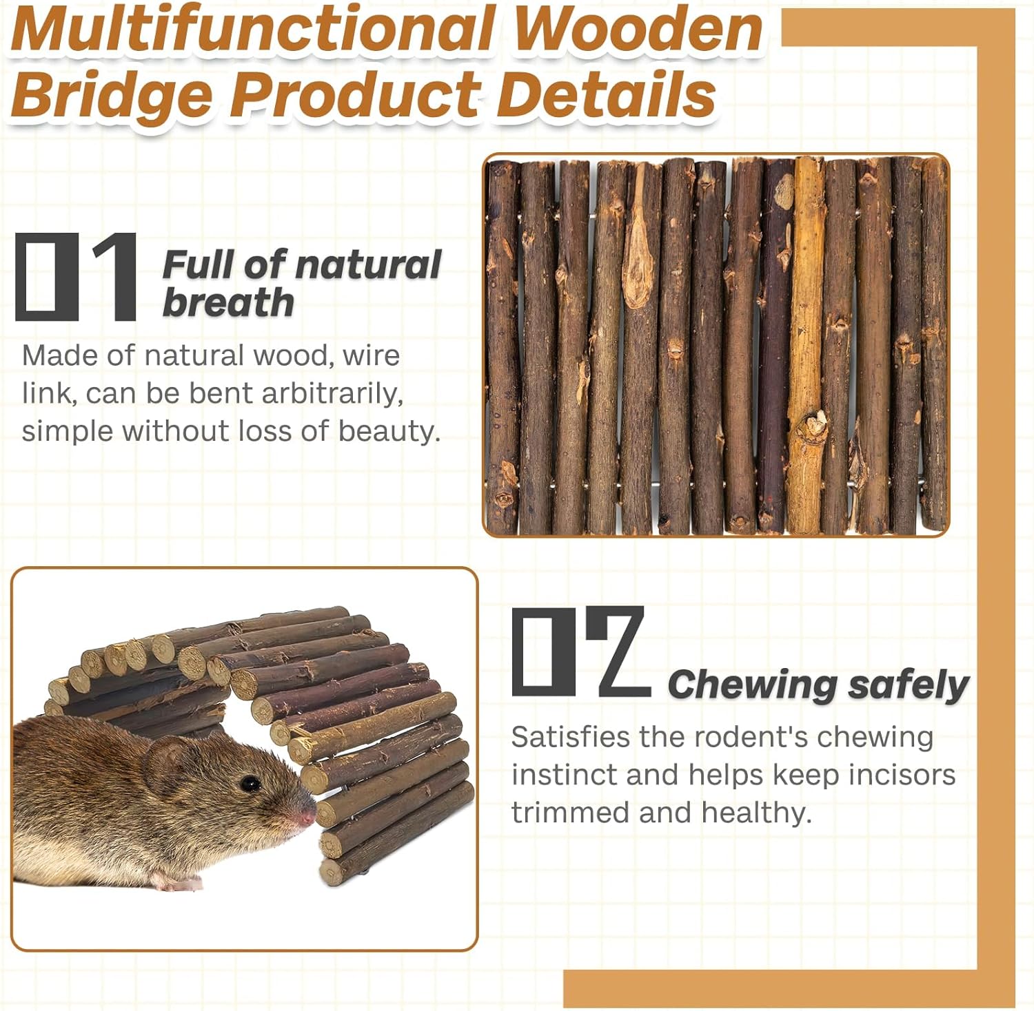 - Versatile Play & Comfort: Perfect for chewing, climbing, and hiding, this wooden bridge doubles as a cozy retreat or interactive toy. Use it as a tunnel, bridge, or ramp to enrich your pet’s habitat with multi-level exploration.