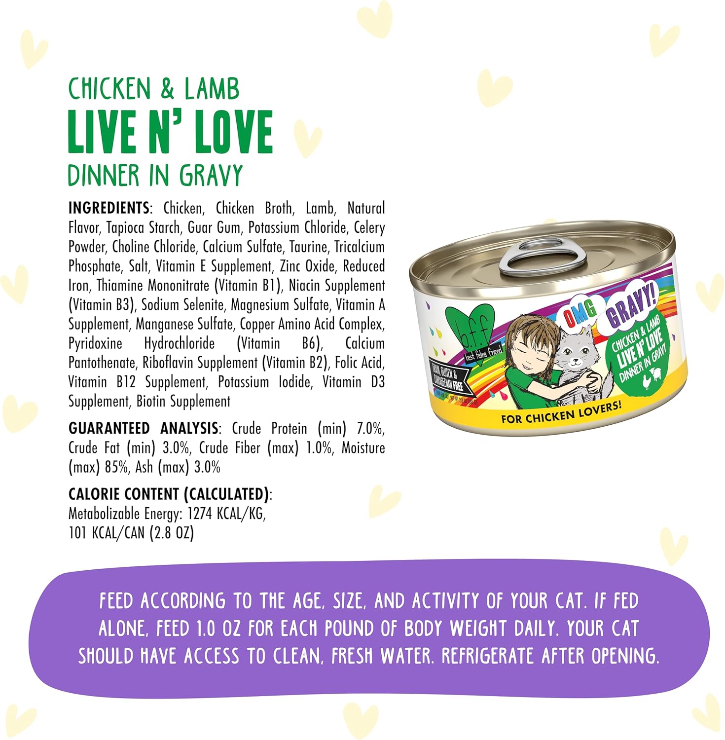Weruva B.F.F. OMG - Best Feline Friend Oh My Gravy!, Chicken & Lamb Live N' Love with Chicken & Lamb in Gravy, 2.8oz Can (Pack of 12)