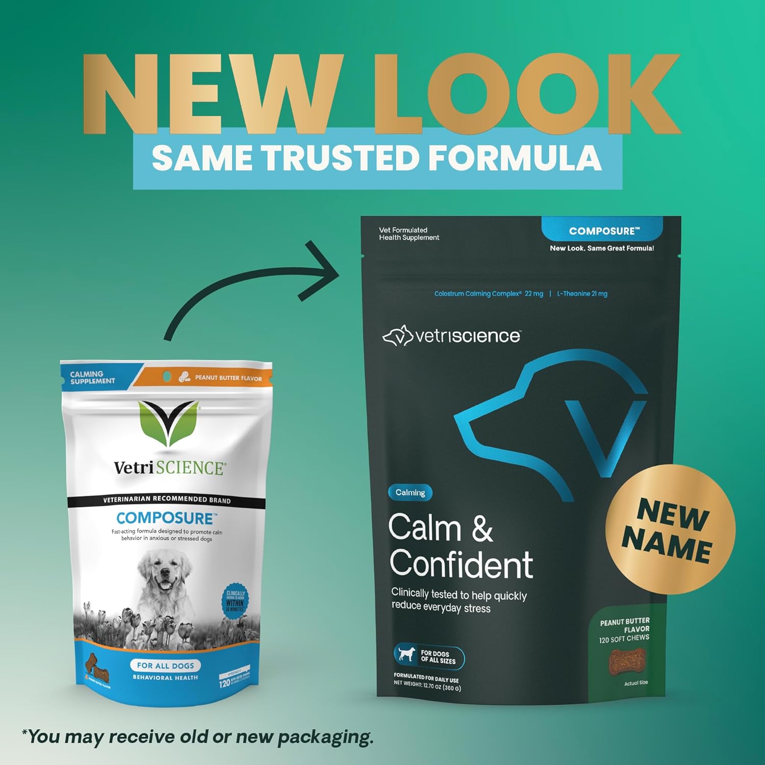 - Vets' #1 Calming Chew: As the only calming chews for dogs clinically tested to work within 30 minutes and last up to 4 hours, Calm & Confident (previously Composure) dog calming chews are the preferred choice in veterinary clinics across the country