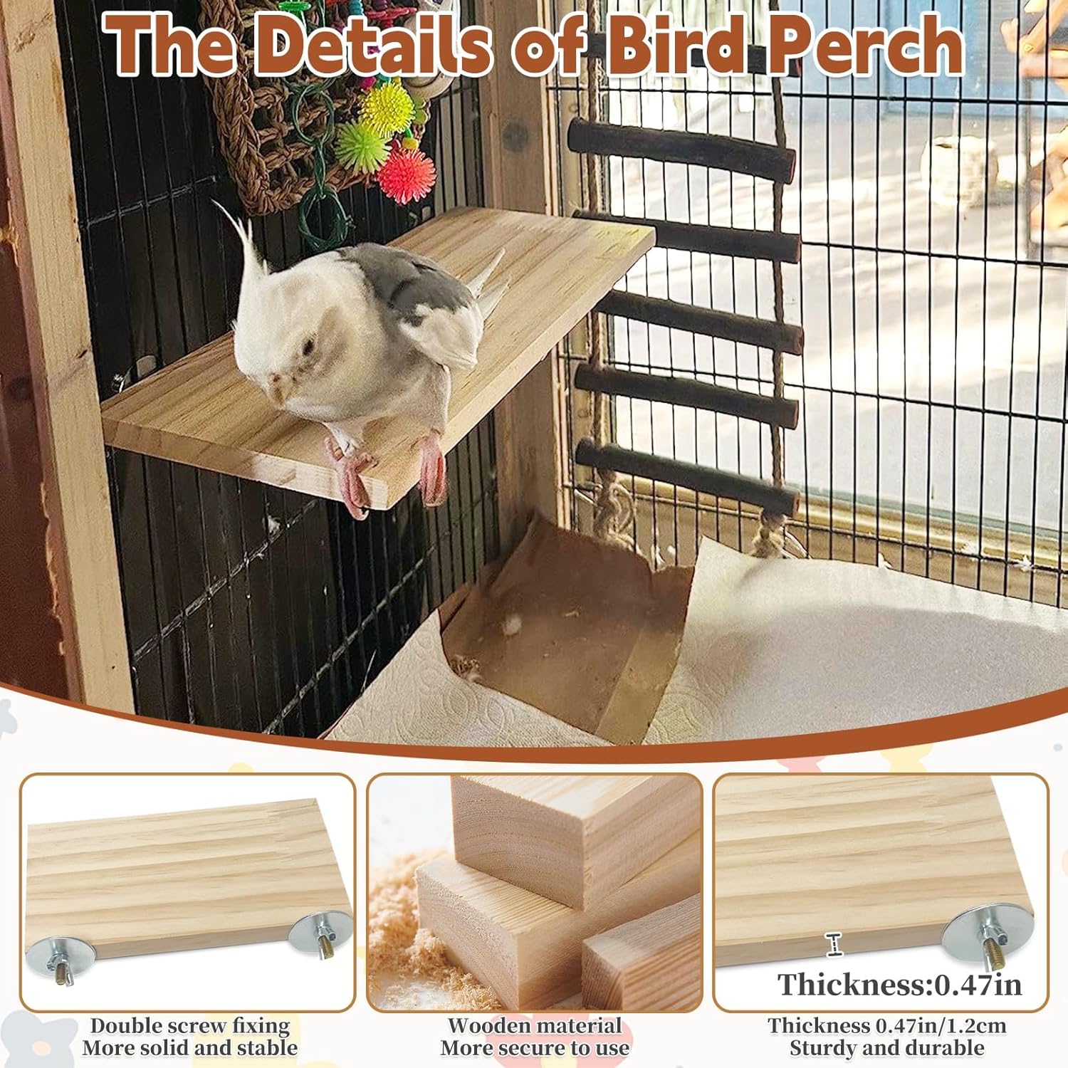 kathson Bird Wood Platform Parrot Perch Stand Parakeet Playground Cage Corner Shelf for Conures Budgies Parakeets Cockatiels Lovebirds 3Pcs