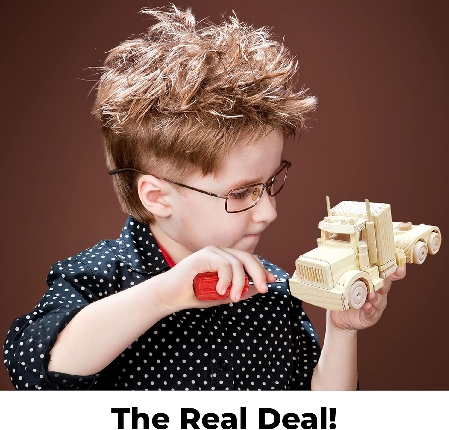 - The Real Deal! Real Wood and Real Tools, Not Just sticking everything together with glue. Wood Pieces are real- not foam or faux wood. Kids will love using the screwdriver and screws to put this together just like adult woodworking!
