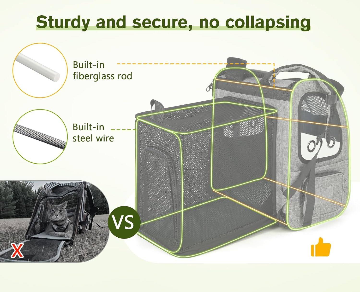 - 【 EXPANDABLE DESIGN 】: Expanded size: 13.4" L x 24.4" W x 17.3" H. This pet backpack with an expandable back design gives your pet more space to rest and increases airflow, allowing your pet to move around more comfortably and reducing anxiety.