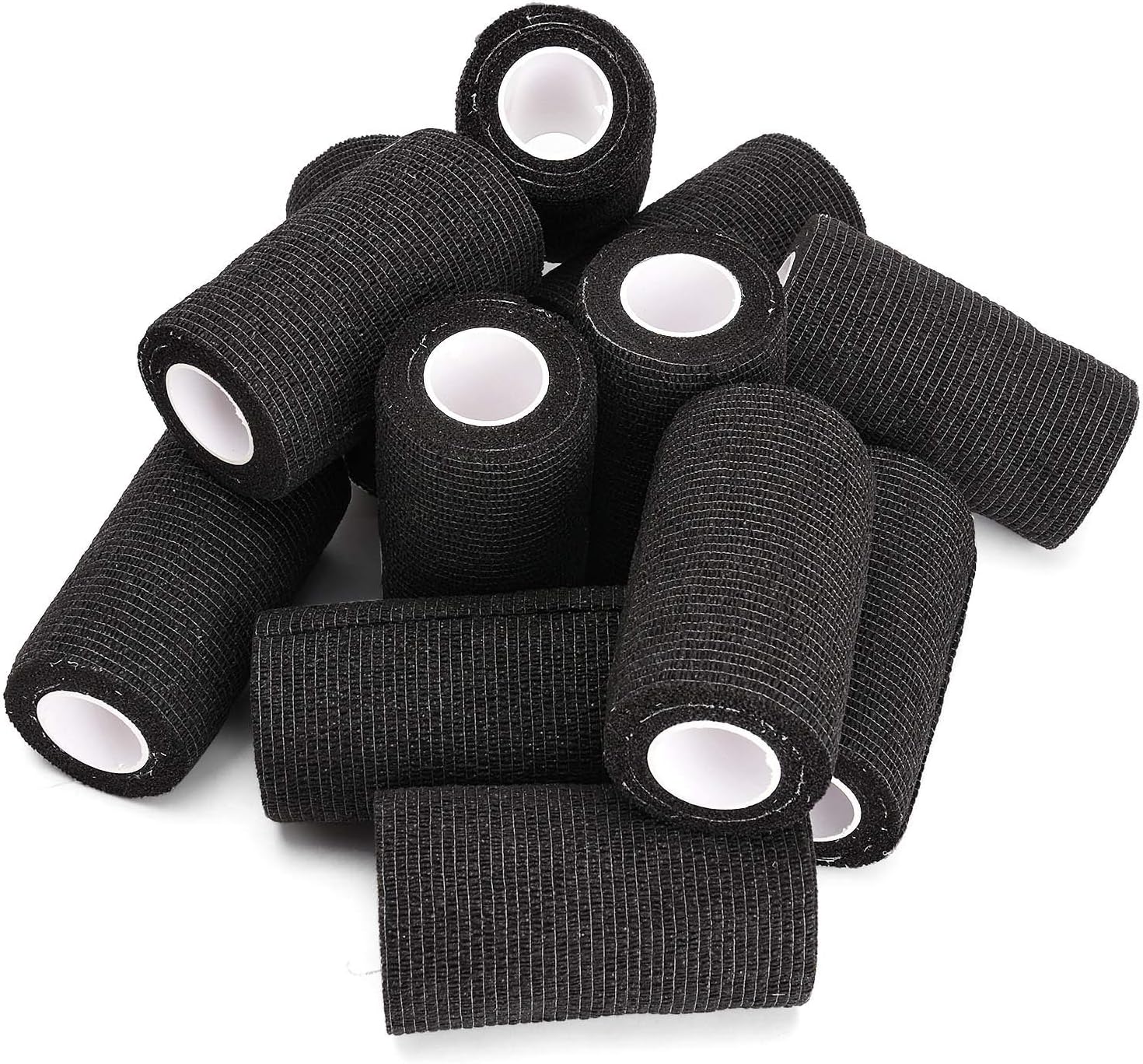 - 【Size & Package】-- Each roll bandage size is approximately 4"x5yd / 10cmx4.5m, which is long enough to wrap any body part you want. Pack of 12 rolll black self adhesive bandage, each roll equips with poly bag individually, easy to carry wherever you want.
