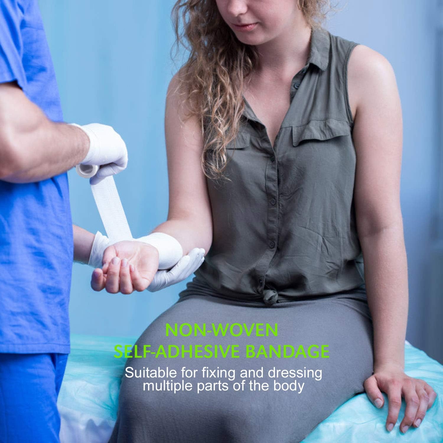 - 【Size & Package】-- Each roll bandage size is approximately 3"x5yd / 7.5cmx4.5m, which is long enough to wrap any body part you want. Pack of 12 rolll white self adhesive bandage, each roll equips with poly bag individually, easy to carry wherever you want.