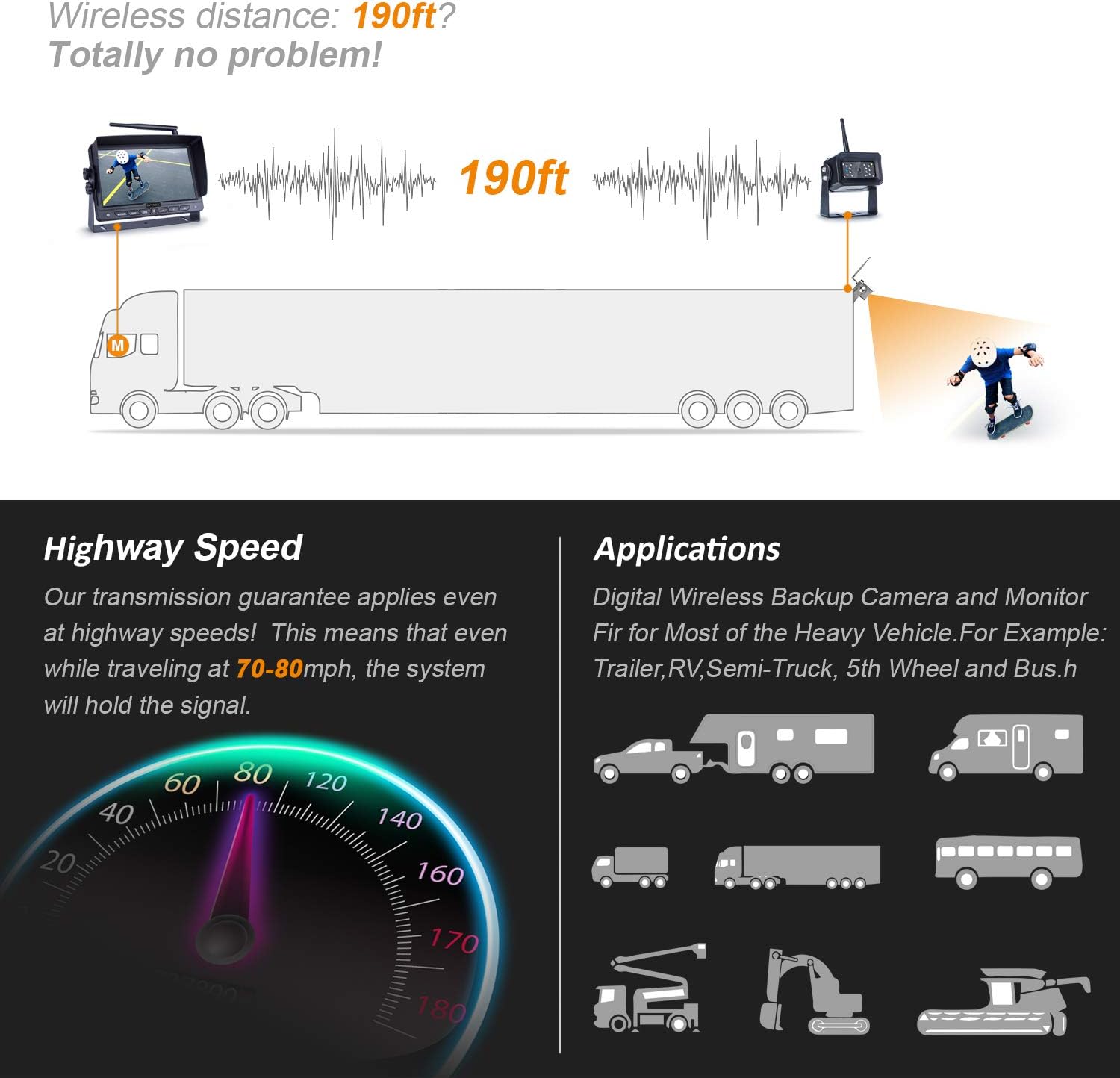 Digital Wireless Backup Camera Kit, 7 Inch Display and 720P HD Resolution, Wide Angle Rear View Camera with Night Vision, 190ft Wireless Reverse Camera System Suitable for Truck, Motorhome, 5th Wheel