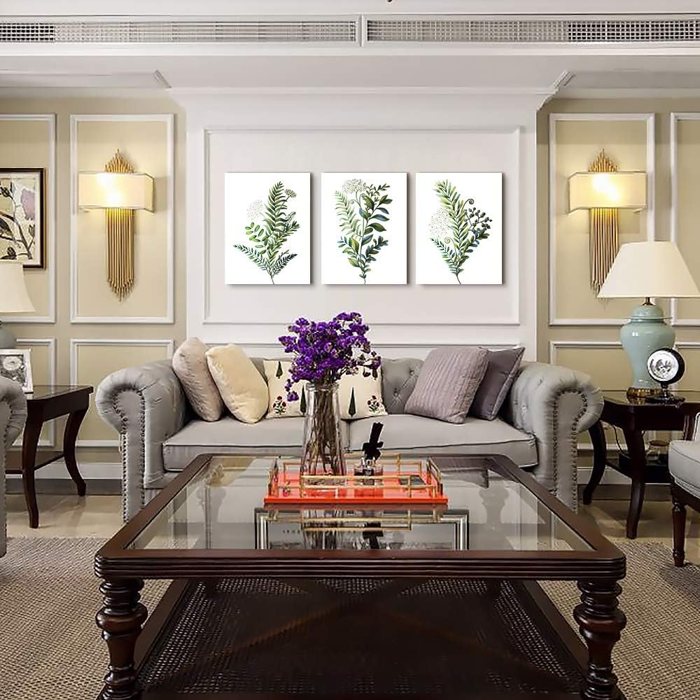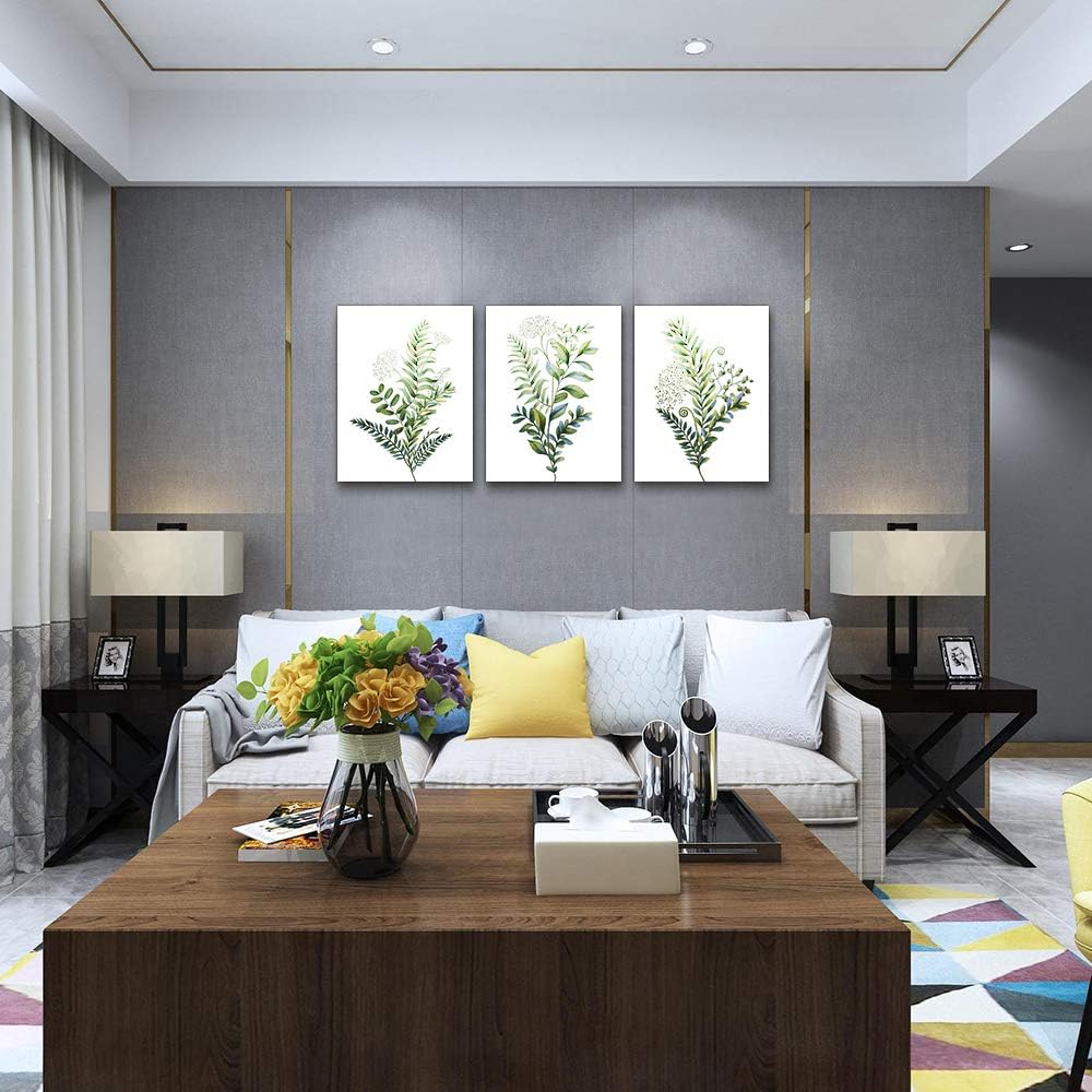 3 Pieces Framed Wall Art for Living Room Bathroom Wall Decorations Kitchen Wall decor Canvas Print decor modern Simple Bedroom Home Decoration Green leaves Poster wall paintings
