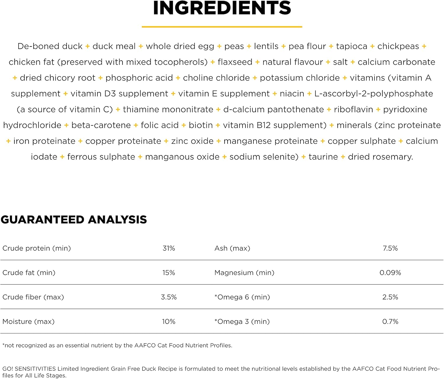 Go! Solutions Sensitivities Limited Ingredient, Grain-Free Dry Cat Food, Duck Recipe for Sensitive Stomach, 16 lb Bag