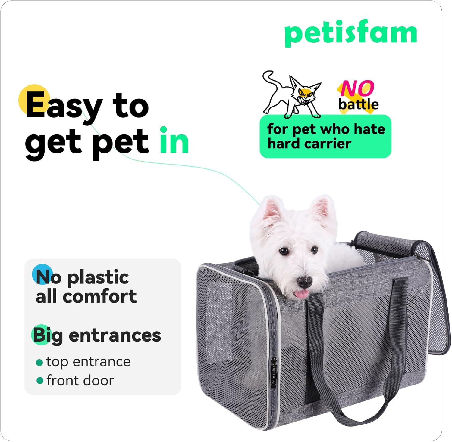 - MUCH COMFORTABLE AND SAFER THAN HARD CARRIERS. Cats may be terrified in a hard shell carrier and get hurt, petisfam soft travel carrier will be less intimidating and more comfortable and safer for them