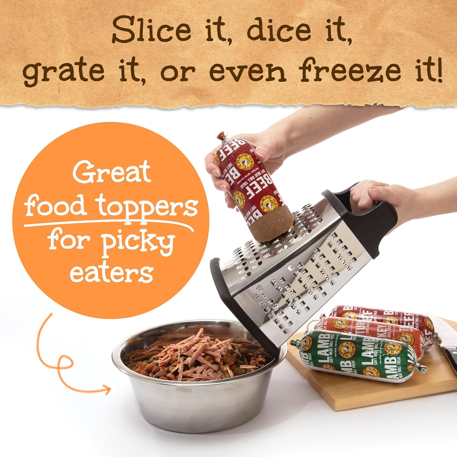 - VERSATILE AND DELICIOUS - Reward your dog with our Soft Meat Roll Treats! Grate over food to enhance meals or press over a pill to give your dog medicine effortlessly