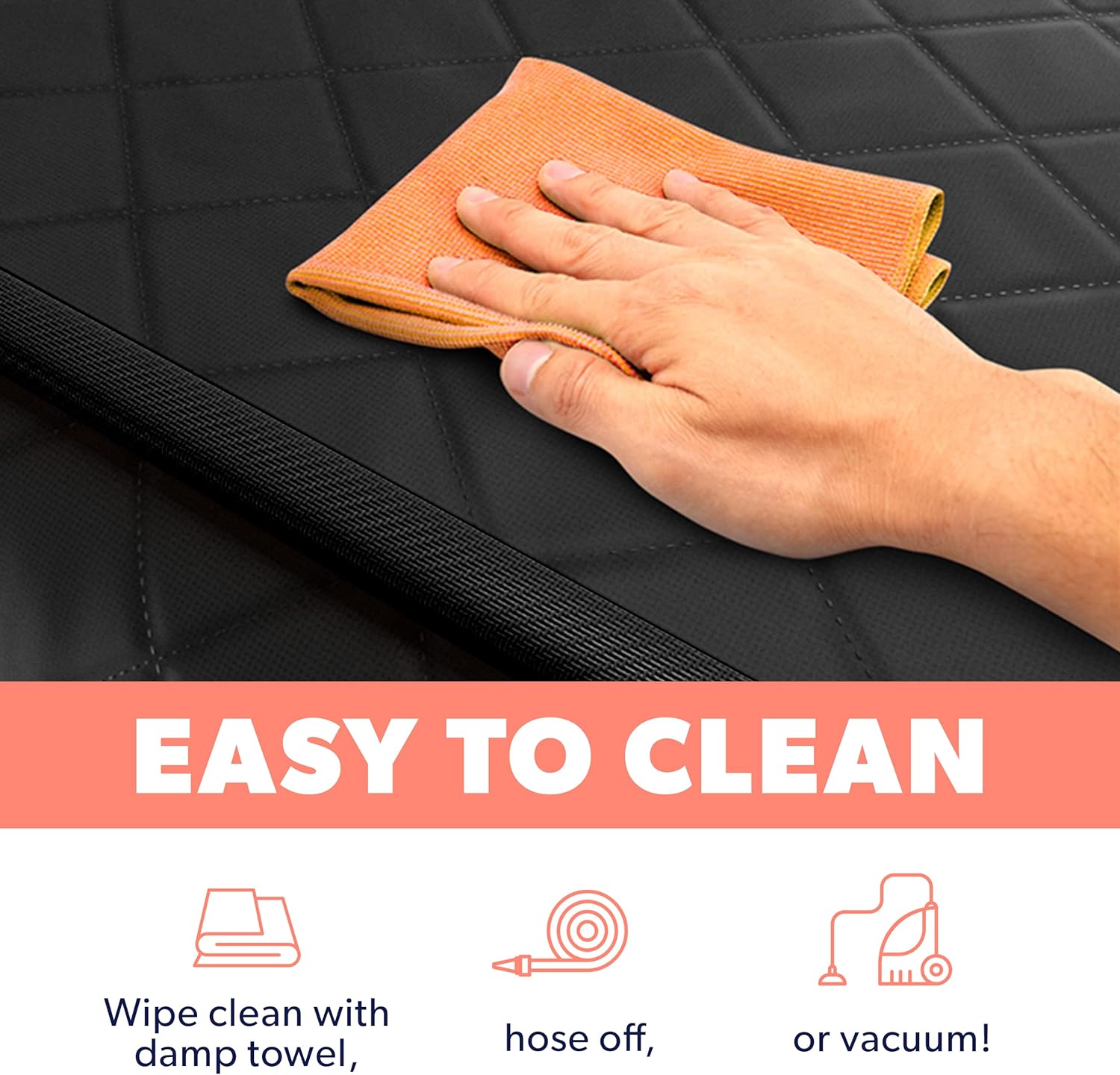 - EASY-TO-CLEAN MATERIALS – Active Pets dog front seat cover is made exclusively from super easy to clean materials! Crafted with a top layer of premium 600D Oxford waterproof cotton and a middle layer of Oxford 210D with waterproof coating, your seats will remain clean no matter what. In case your pet has dirtied the seat cover, just wipe with a damp cloth or vacuum it and it will be new again in a minute!