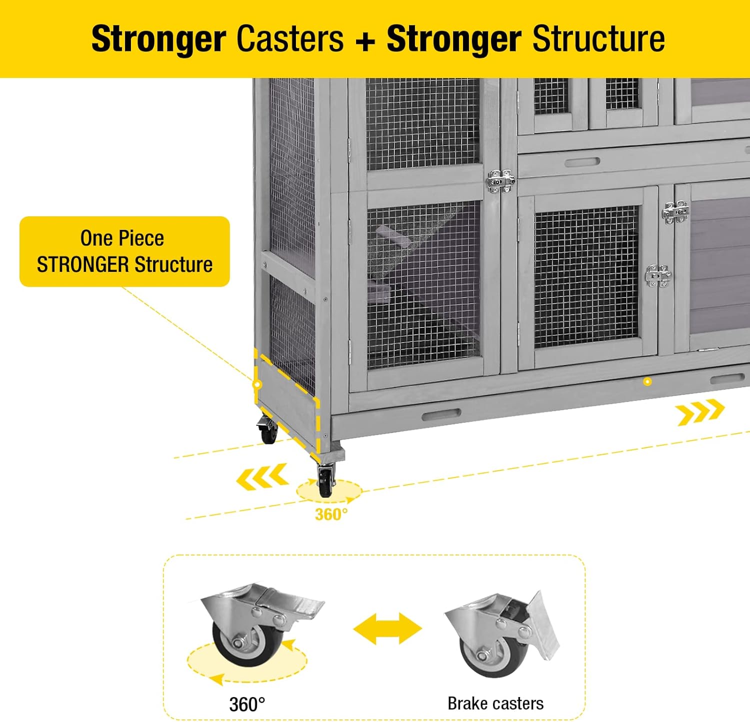 - Four stronger metal wheels to easily move the rabbit hutch and quickly. 2 are brakes to fix well and keep safe.