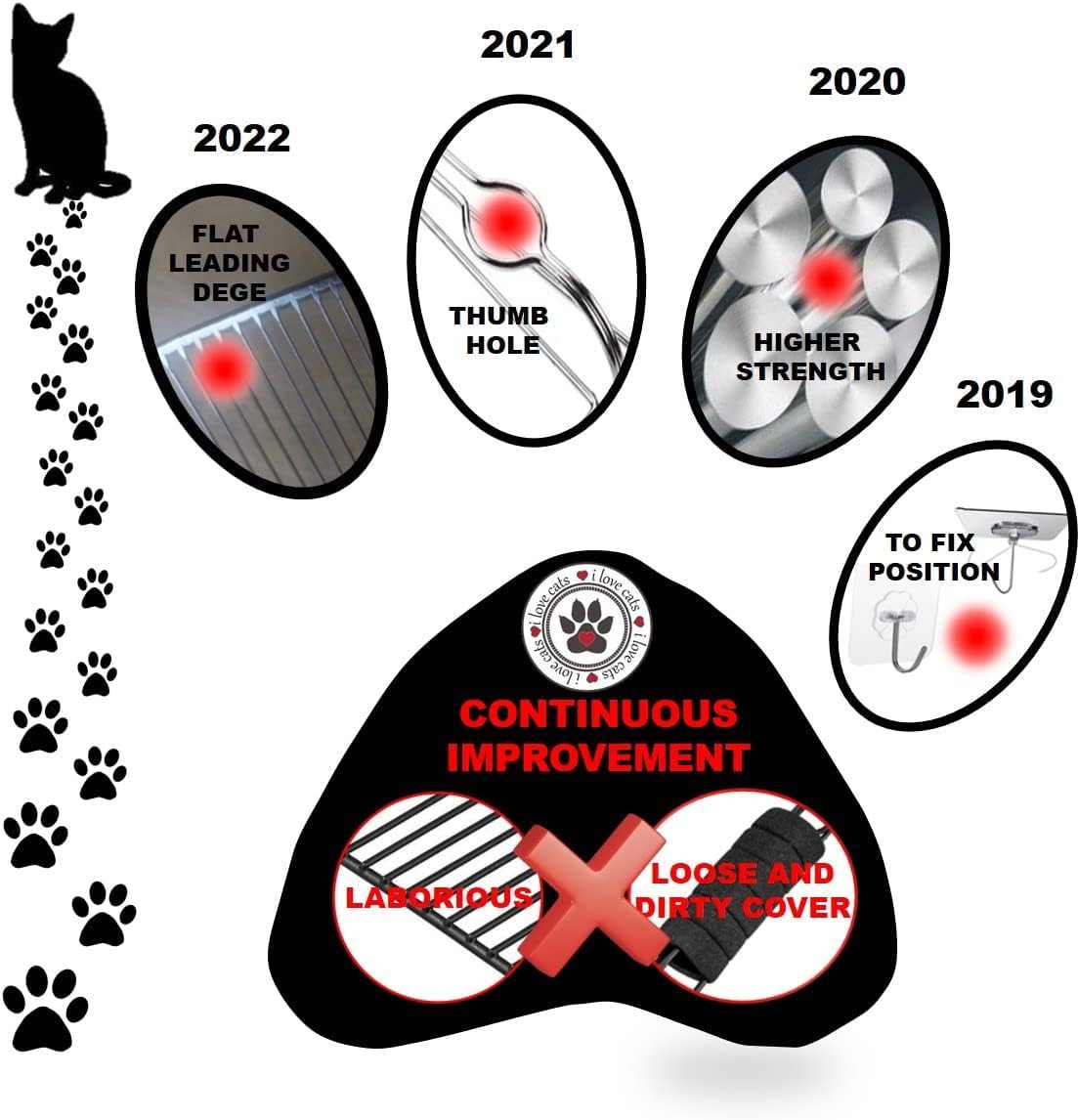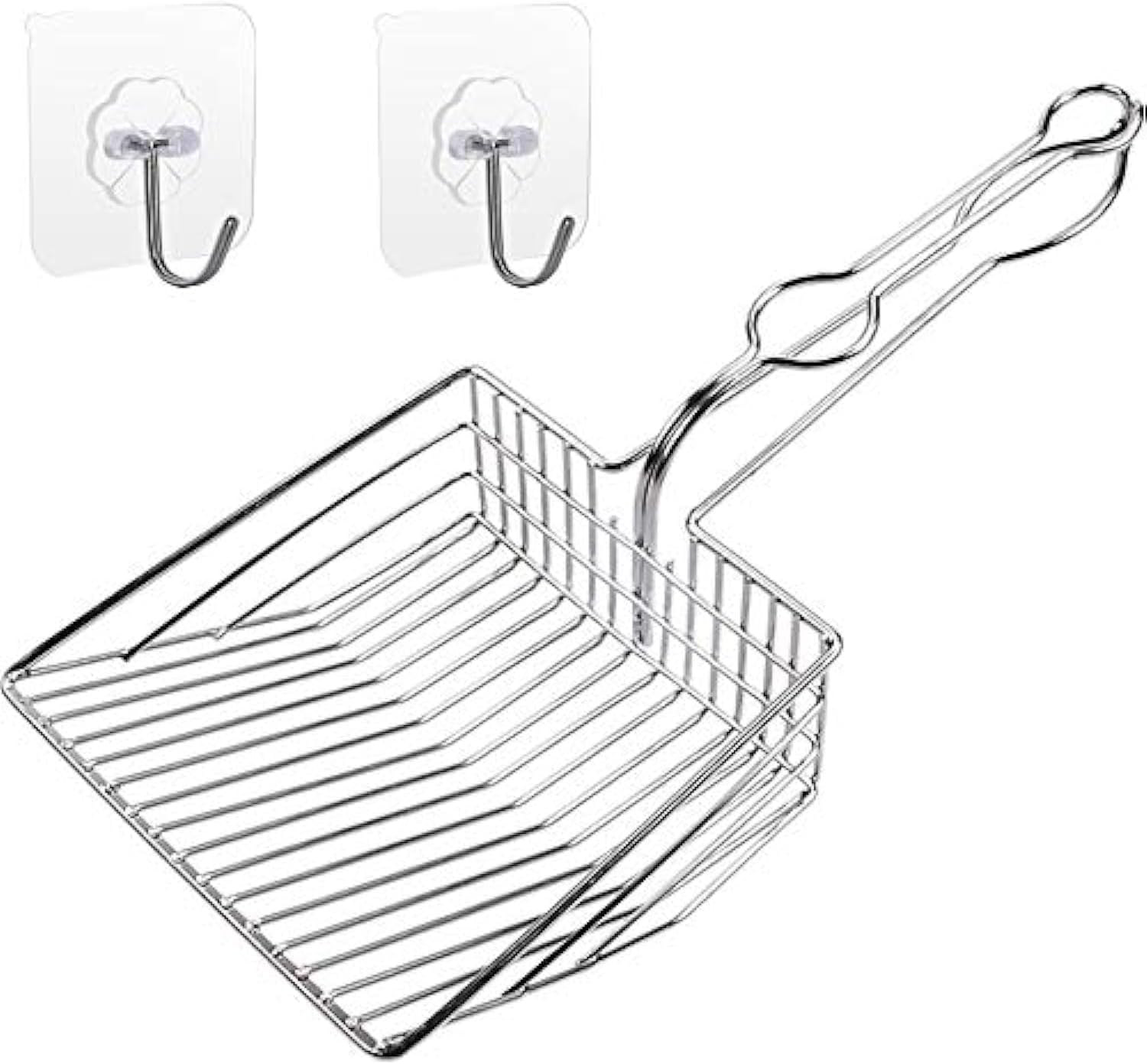 - ๐ ใFAST metal litter scooperใ Made of ROUND and smooth stainless steel wires, NO stuck and LESS sticky, stays clean and easy to clean. The large deep shoveled metal cat scooper works with clumping cat litter like a breeze, fast and fun. NO shaking and shaking, NO clumps breaking, and for sure it will reduce dust and odor inhalation for health.