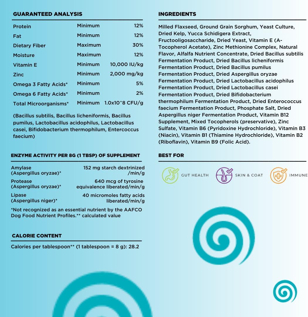 - SUPPORTS GUT HEALTH AND DIGESTION, AVOIDS INFECTION: Loaded with live dog probiotics and enzymes to promote a balanced gut, reduce gas, and support better nutrient absorption, ideal probiotic for dogs' digestive health.