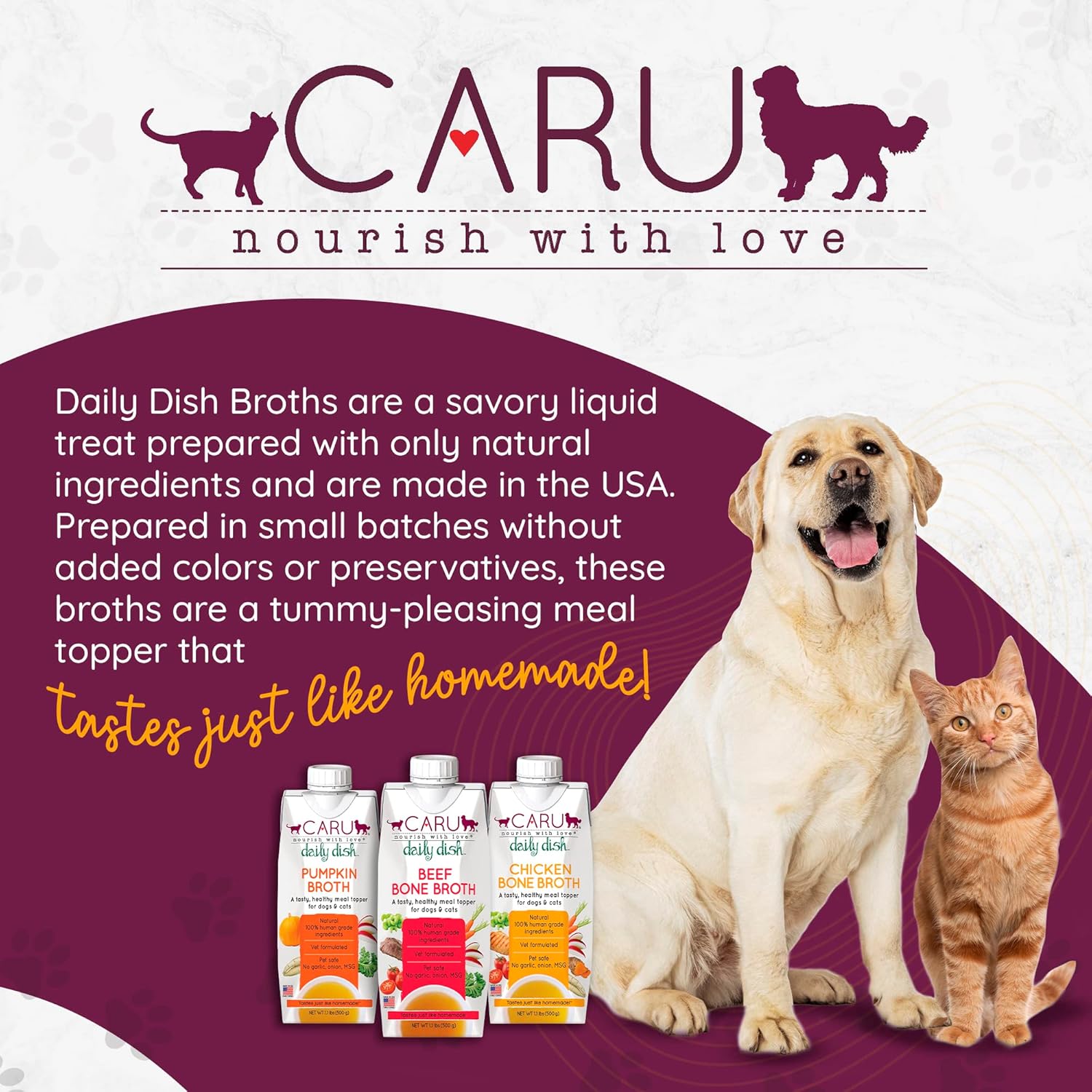 - Healthy food topper or broth for dogs & cats - naturally hydrates and encourages drinking of water
