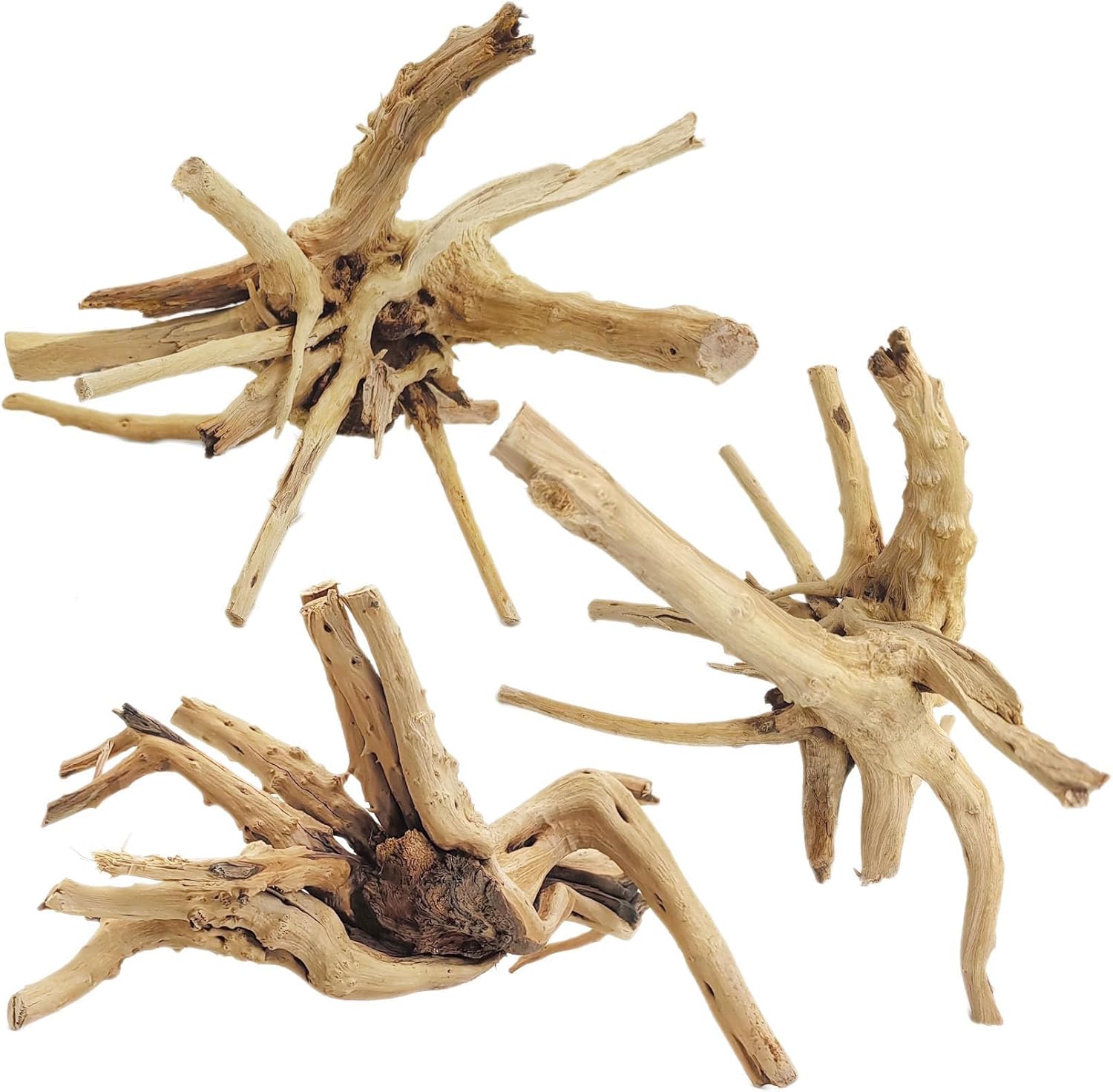 - SIZE: Package includes 3 pcs spider wood for aquarium. Sizes varies from 9.84 to 11.42 inches in length. Aquarium decor wood is safe for all pets. Shrimps, fish fry, hermit crabs, fish, and even reptiles love spider wood aquarium driftwood