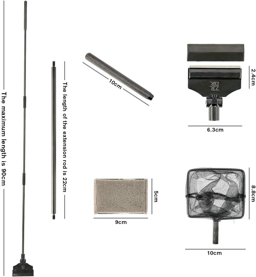 - Telescopic Handle: The long handle aquarium scrubber is made of stainless steel, it is connected by a non-slip connecting rod and will not fall off. The longest length can reach 35.4 inches, suitable for various sizes of fish tanks