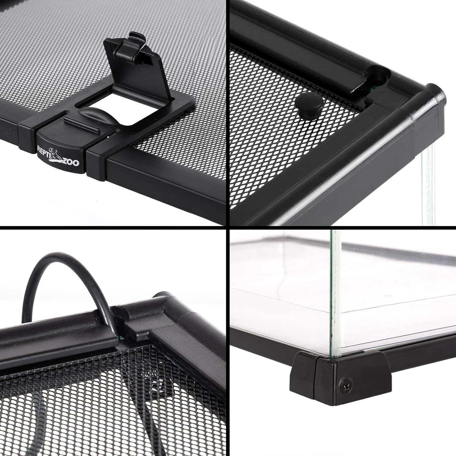 REPTI ZOO Full Glass 15 Gallon Reptile Tank, Medium Reptile Terrarium for Gecko Hermit Crab Hognose Snake etc, Top Screen Ventilation & Feeding