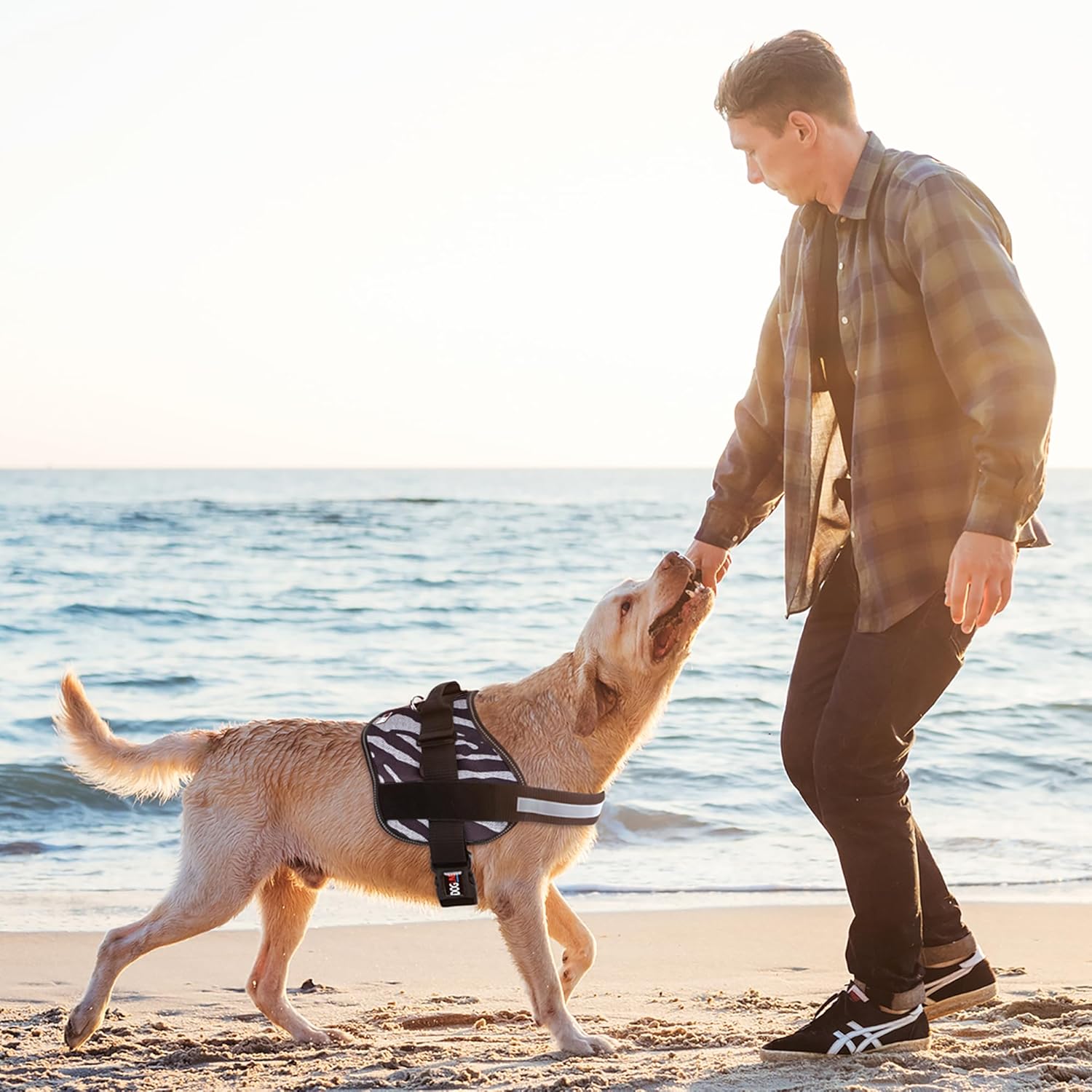 Dogline Dog Harness, Reflective No-Pull Adjustable Vest with Handle for Walking, Training, Breathable, No - Choke Harness for Small, Medium or Large Dogs Room for Patches Zebra Black/White S 18"-24"