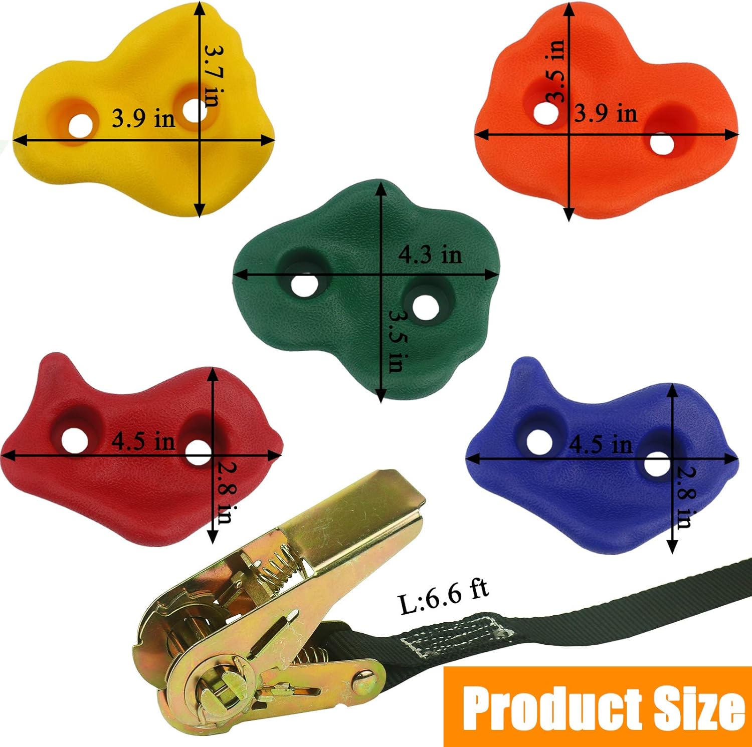 - 【Easy to Install & Disassemble】The climbing rock kit can be easily assembled and disassembled without other tools. The rock climbing does not need screws to perforate. It can be fixed on the tree with a ratchet strap, which can protect the tree or give it to children Bring enjoyable outdoor activities.