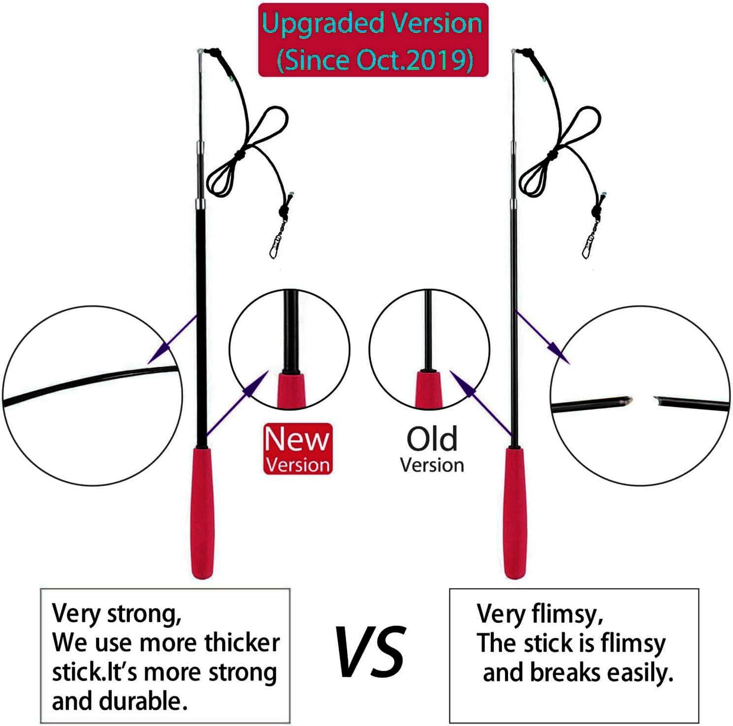 - Great Value--1 Cat wands,5 Worms,3 Packs Cat Feathers 1 Pack Butterfly and 1Pack Octopus.(Provide endless of fun) Durable & Retractable Cat Wand.The wand is made of high carbon fiber which makes it more durable and more flexible.The Rod can extend to 4 periarticular for teasing