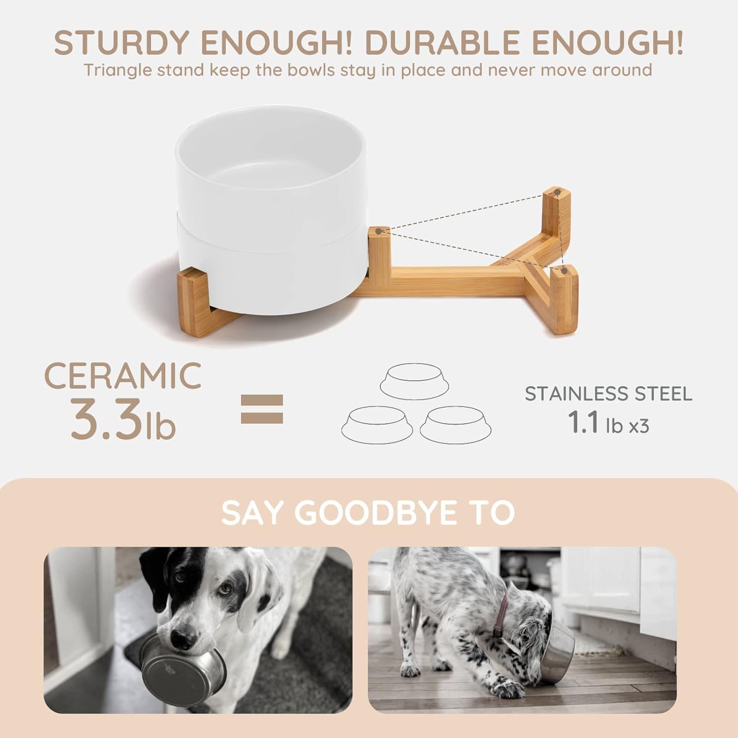 - Double Bowl Design:One dog bowl for food and one for water, Each ceramic cat bowl has a Unique wooden stand, raising the dishes closer to your pet for more comfortable eating