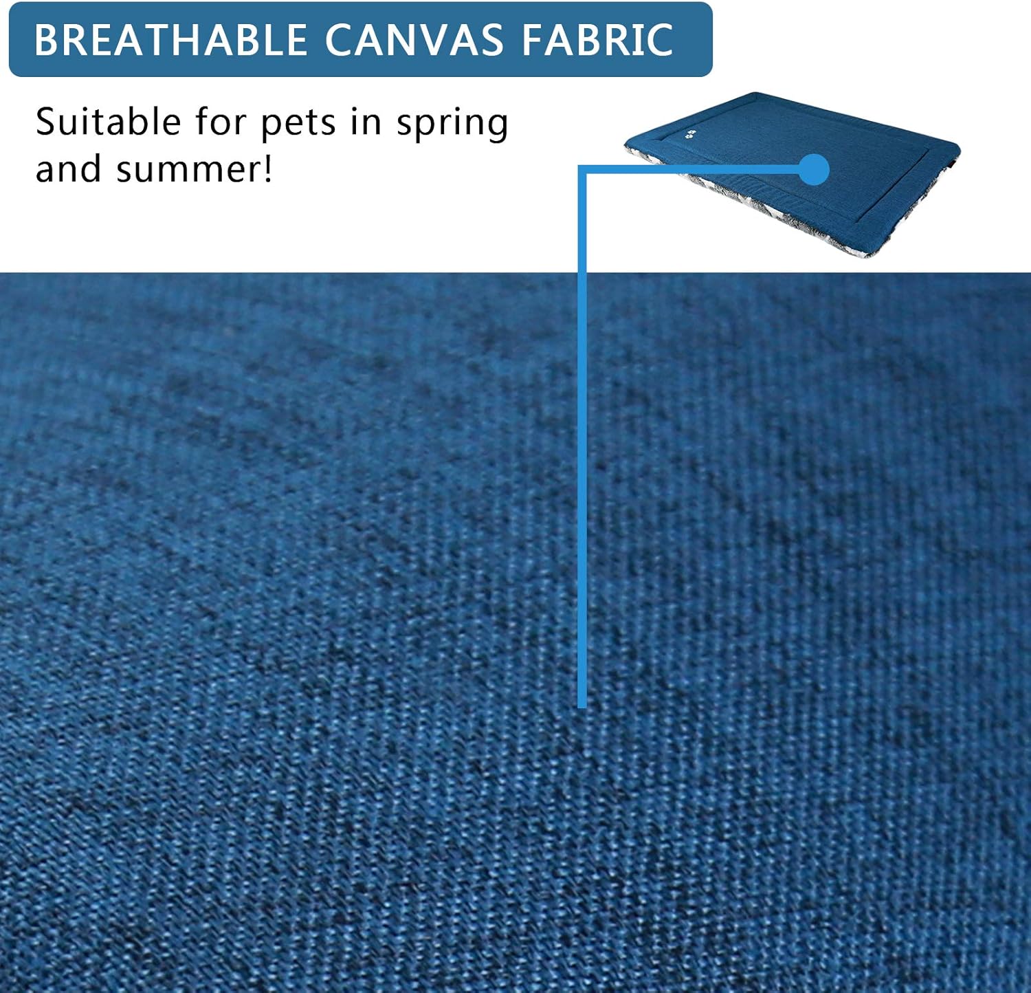 - Winter side and Summer side-This pet mat is reversible designed: one side surface is made of soft self warming plush, which is perfect for your pets in cold season(s), while the other side surface is with quality breathable canvas, which is ideal for your pets in hot season(s).